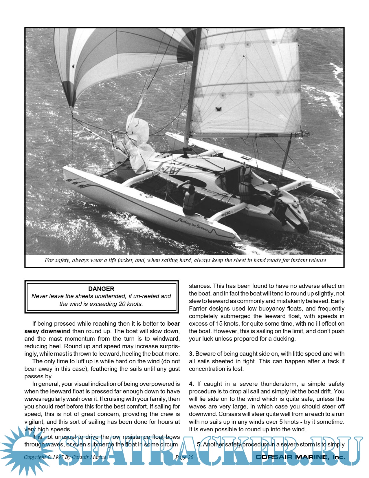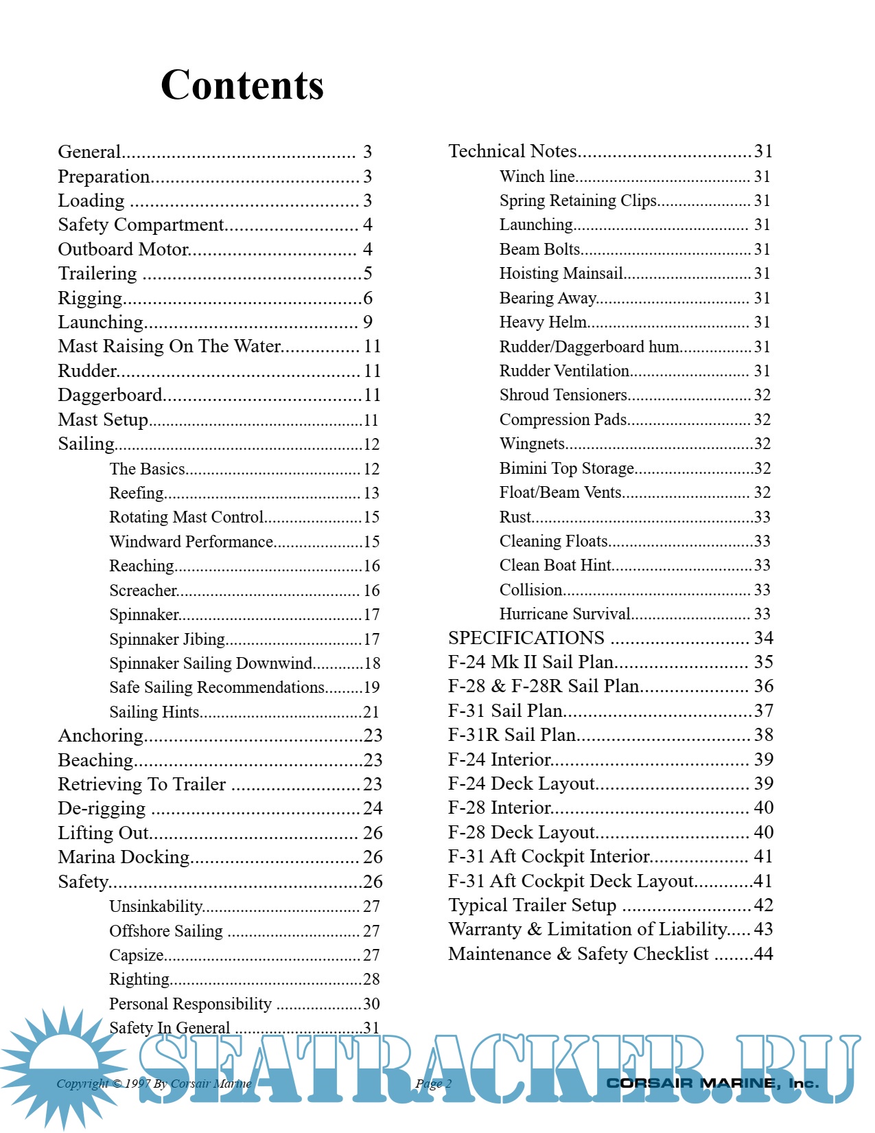 Description: Sailing Manual For All Corsair Models Including F-24, F-28 and F-31 This manual has been compiled to help you to operate your craft with safety and enjoyment. It contains details of the craft, the equipment supplied or fitted, its systems, and information on its operation and maintenance.