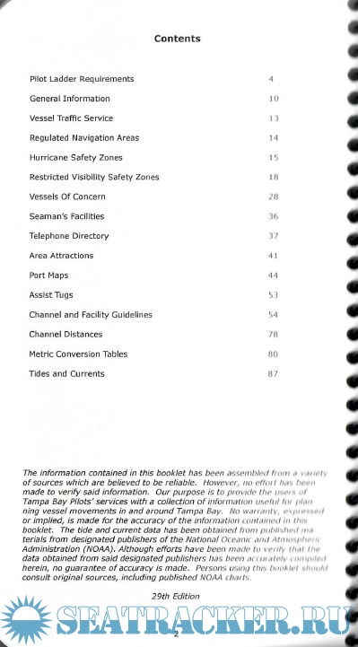 Year: 2021 Language: english Author: Tampa Bay Pilot's Association Genre: Guide Publisher: Tampa Bay Pilot's Association Edition: 29th Format: PDF Quality: OCR with errors Pages count: 74 Description: The Tampa Bay Pilots Association is comprised of highly-skilled and trained harbor pilots that provide comprehensive pilotage services for the ports of Tampa, St. Petersburg and Manatee.