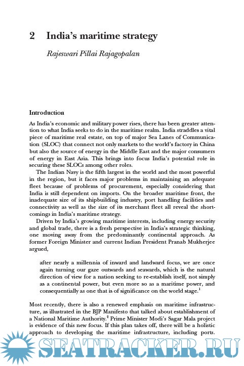 Year: 2016 Language: english Author: Edited by Anit Mukherjee and C. Raja Mohan Publisher: Routledge ISBN: 978-1-315-66851-2 Format: PDF Quality: eBook Pages count: 281 Description: This book examines India’s naval strategy within the context of Asian regional security. Amidst the intensifying geopolitical contestation in the waters of Asia, this book investigates the growing strategic salience of the Indian Navy. Delhi’s expanding economic and military strength has generated a widespread debate on India’s prospects for shaping the balance of power in Asia. This volume provides much needed texture to the abstract debate on India’s rise by focusing on the changing nature of India’s maritime orientation, the recent evolution of its naval strategy and its emerging defence diplomacy. In tracing the drift of the Navy from the margins of Delhi’s national security consciousness to a central position, analysing the tension between its maritime possibilities and the continentalist mindset, and in examining the gap between the growing external demands for its security contributions and internal ambivalence, this volume offers rare insights into India’s strategic direction at a critical moment in the nation’s evolution. By examining the internal and external dimensions of the Indian naval future, both of which are in dynamic flux, the essays here help a deeper understanding of India’s changing international possibilities and its impact on Asian and global security. This book will be of much interest to students of naval strategy, Asian politics, security studies and IR in general.