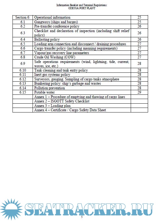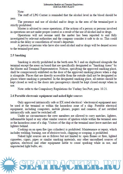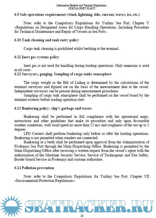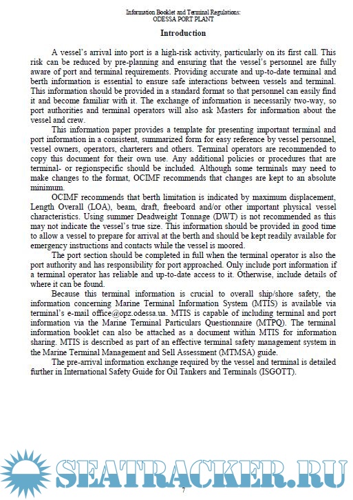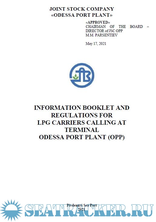 Information Booklet and Regulations for LPG Carriers Calling at Terminal Odessa Port Plant (OPP) Pivdennyi Sea Port, Ukraine