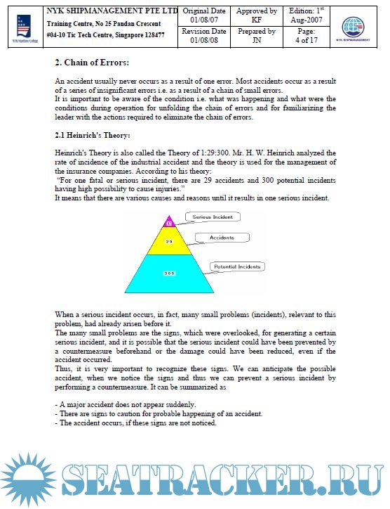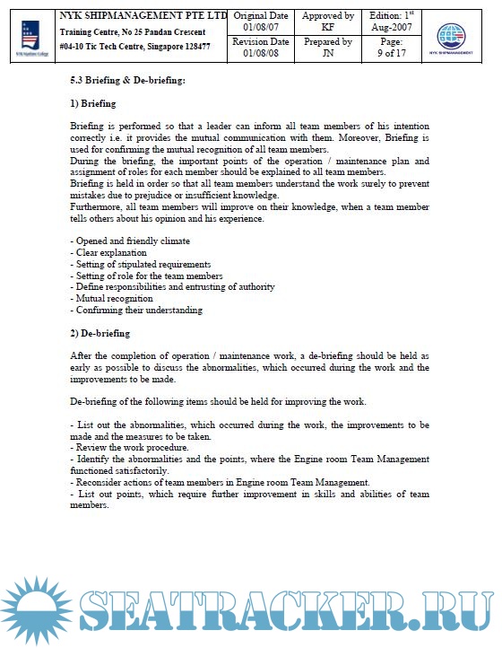 Year: 2008 Language: english Author: NYK Maritime College Genre: Training courses Publisher: NYK Maritime College, Singapore Edition: 1st Format: PPT Quality: OCR without errors Pages count: Multiple Description: Course Code: NMC 22 Course Name: Engine Room Resource Management Training Duration: 2.5 Days Objectives of the Training After completion of the training, the trainees should understand the followings: 1) Management of human resource (Engine crews) 2) Communication skills 3) Emergency responses 4) Human involvement in errors.