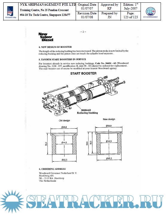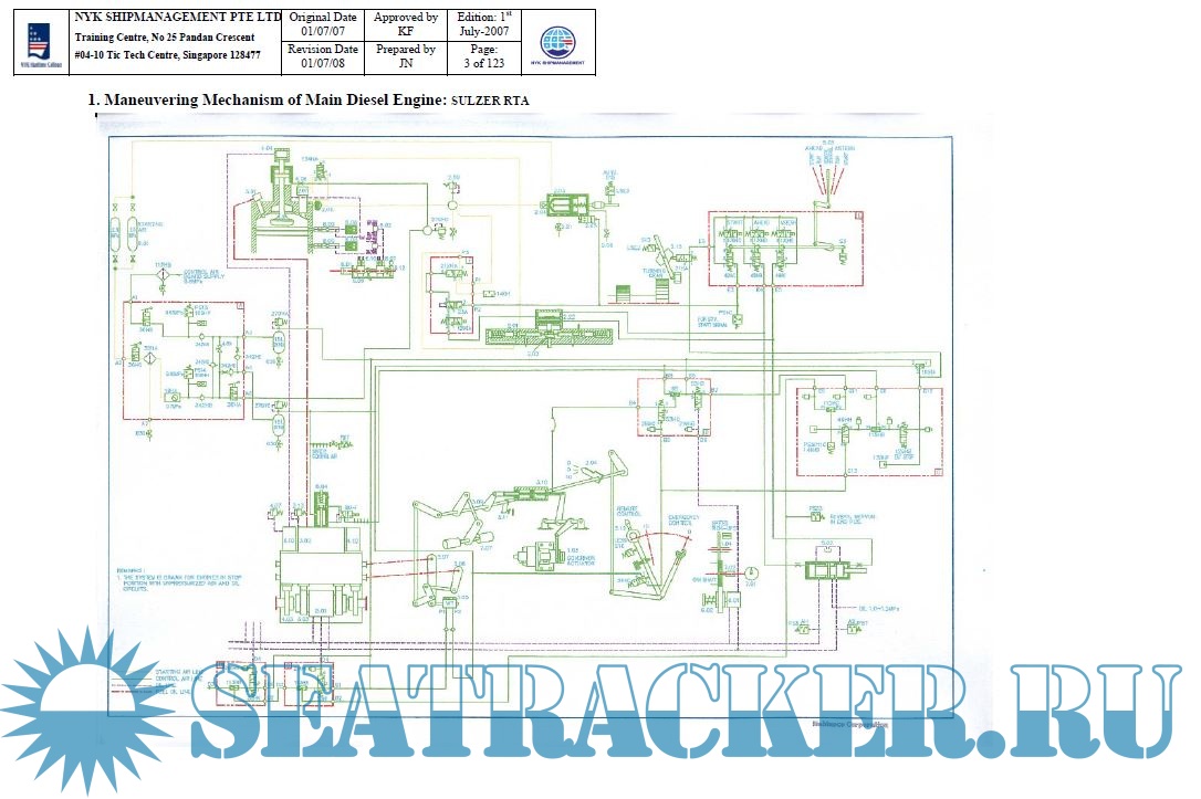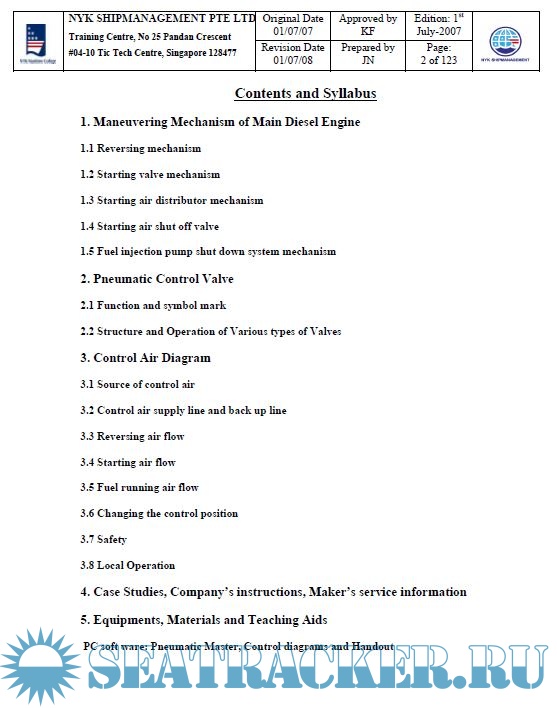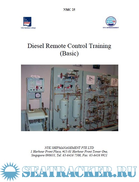 Year: 2008 Language: english Author: NYK Maritime College Genre: Training courses Publisher: NYK Maritime College, Singapore Edition: 1st Format: PPT Quality: eBook Pages count: Multiple Description: Course Code: NMC 25 Course Name: Diesel Remote Control Training (Basic) Duration: 3 Days Objectives of the Training After completion of the training, the trainees should understand the followings: 1) Maneuvering Mechanism of Main Diesel Engine 2) Pneumatic control system diagram 3) Safety system 4) Machine side operation