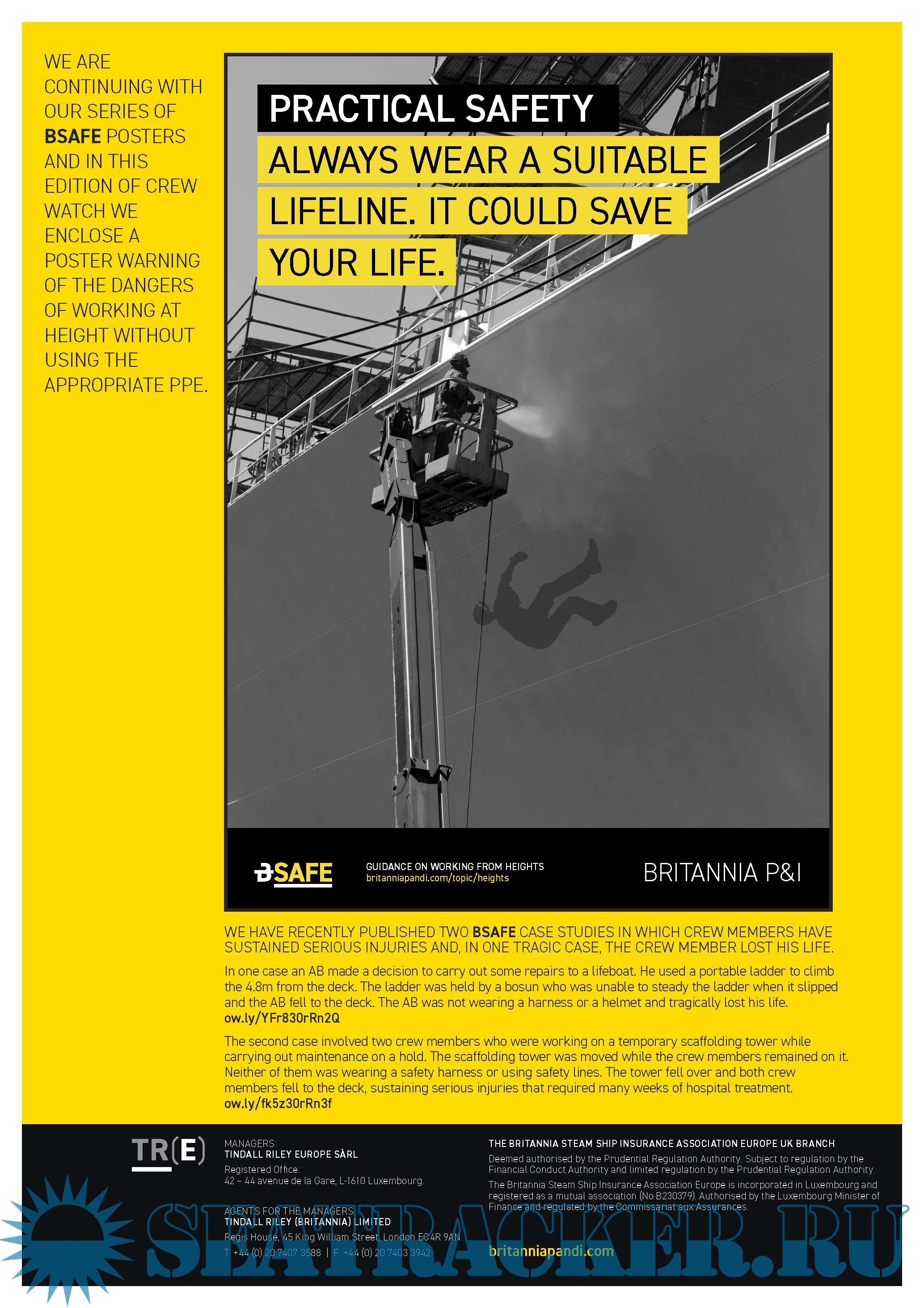 Description: The quarterly publication of Crew (and Risk) Watch is aimed directly at Members’ crew with practical advice of topical Safety, Health and Welfare issues.