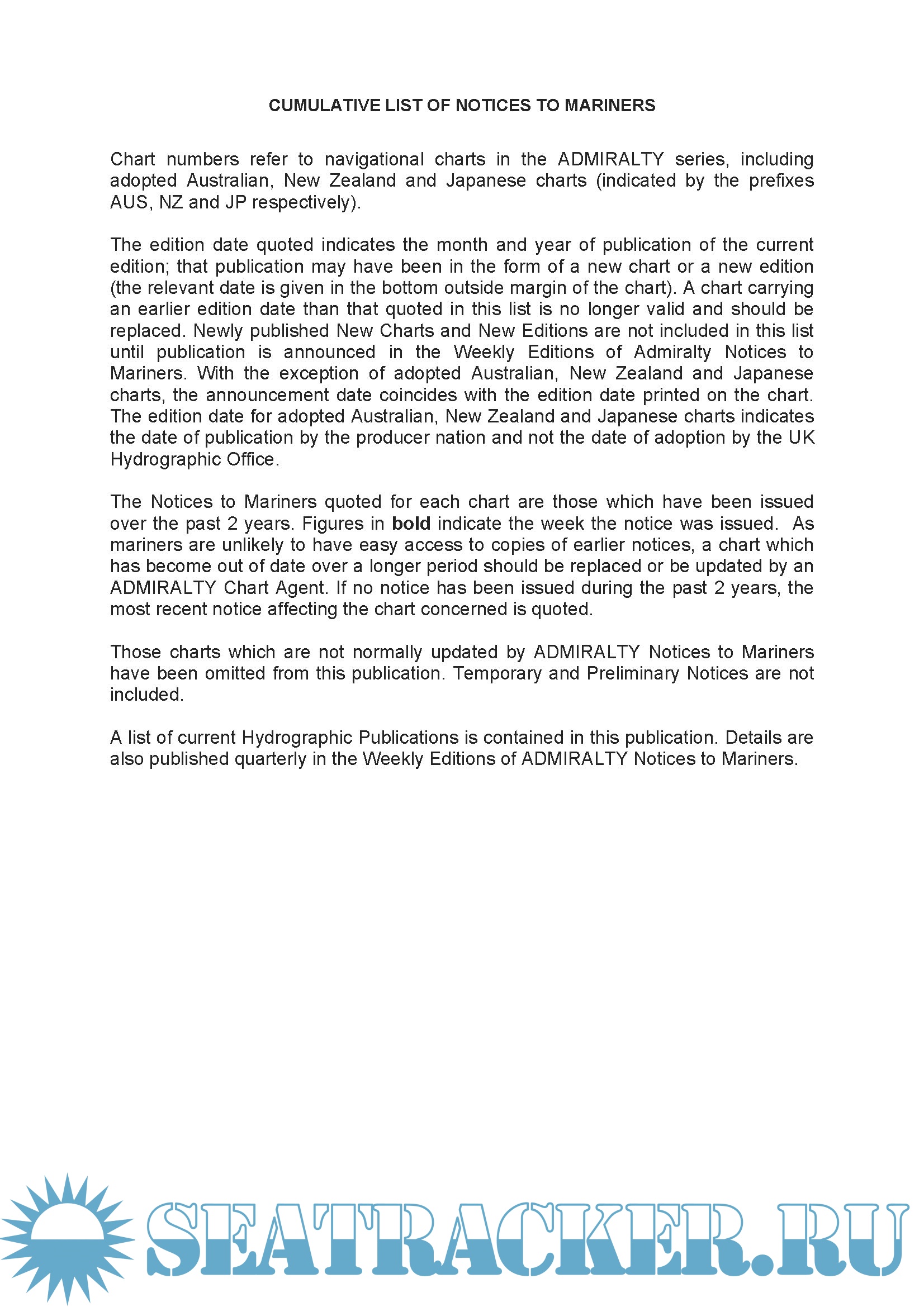 Year: 2021 Language: english Author: UKHO Format: PDF Quality: eBook Pages count: Multiple Description: The Cumulative List of ADMIRALTY Notices to Mariners (NP234 A/B) can help you to identify outstanding NMs and audit trails for a particular chart or charts. The list is published annually, with Part A in January and Part B in July. :)))