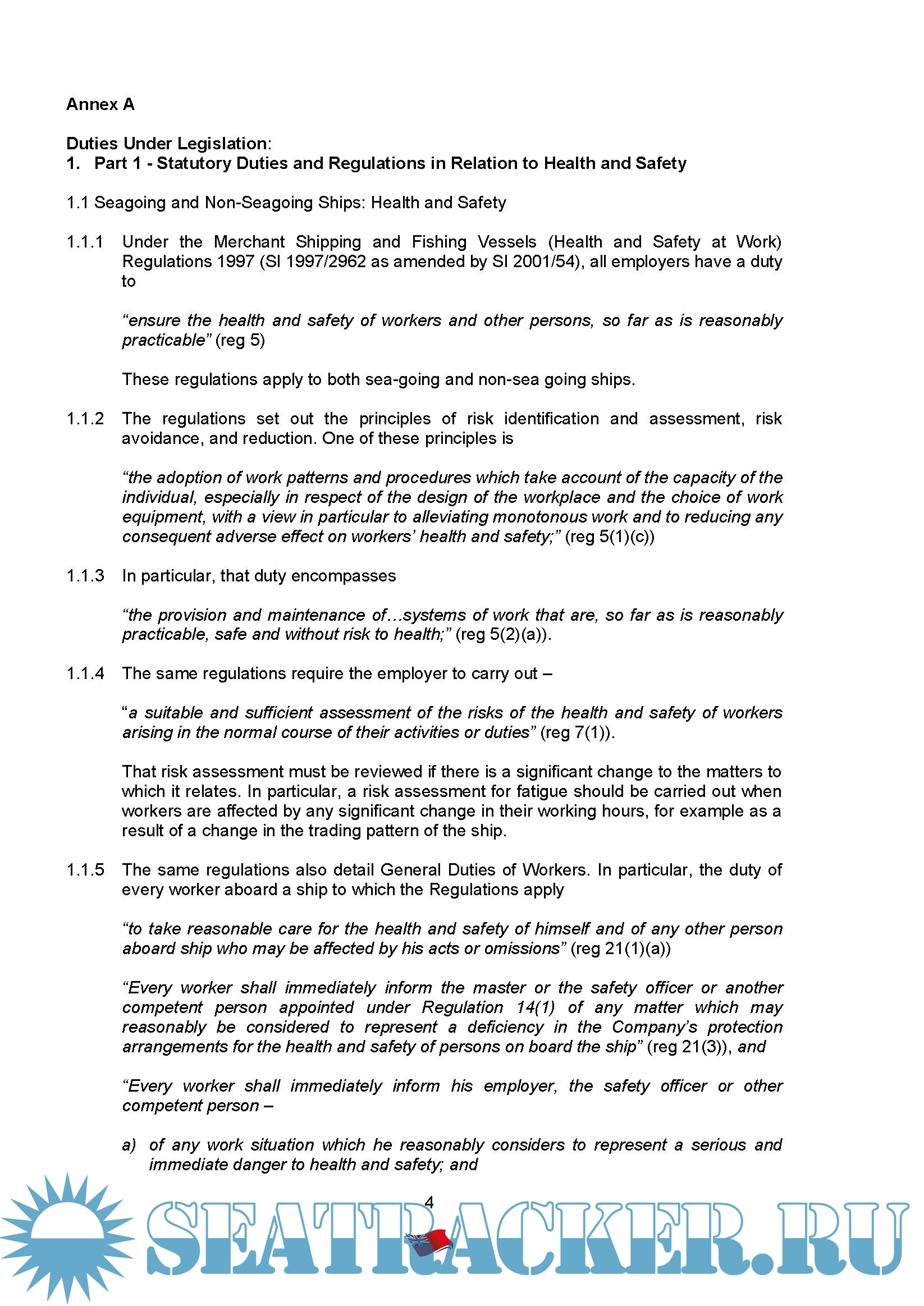 1. Reminds owners, operators, managers and all personnel working on board seagoing, domestic and inland waterway vessels about their duties under UK and international shipping legislation in relation to fatigue, and