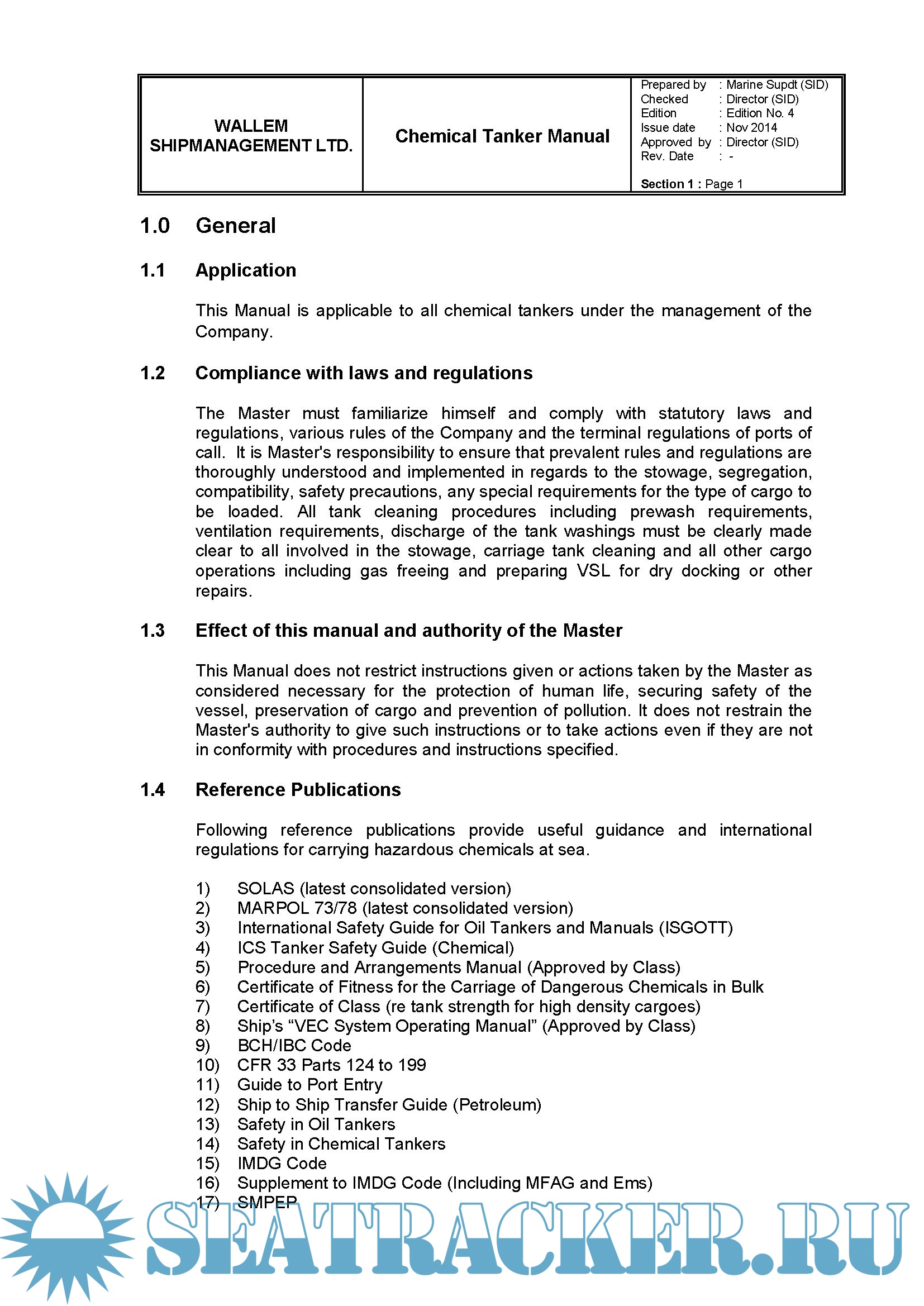Description: This Manual is applicable to all chemical tankers under the management of the Company.