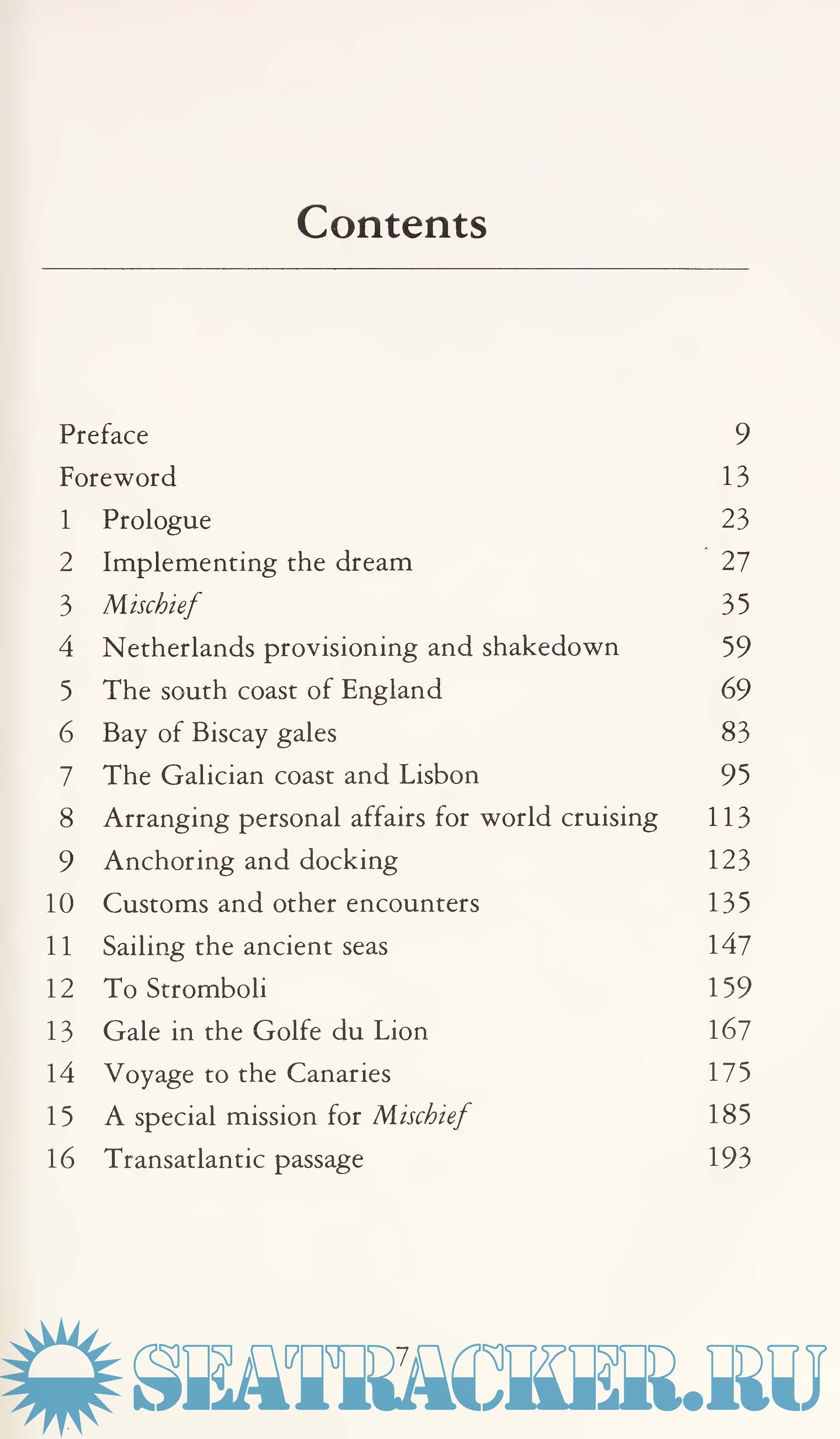Vogt gives step-by-step explanations of the details of how Sparkman & Stephens designed Mischief, built to be the perfect cruising sailboat. He follows this with a lively and intelligent account of their first voyage, from the yard in Holland where the boat was built to the West Indies, via England, Spain, and the Mediterranean. He includes numerous anecdotes that give the flavor of foreign sailing, and has a knack for perceiving and describing the essence of the problems and pleasures involved.