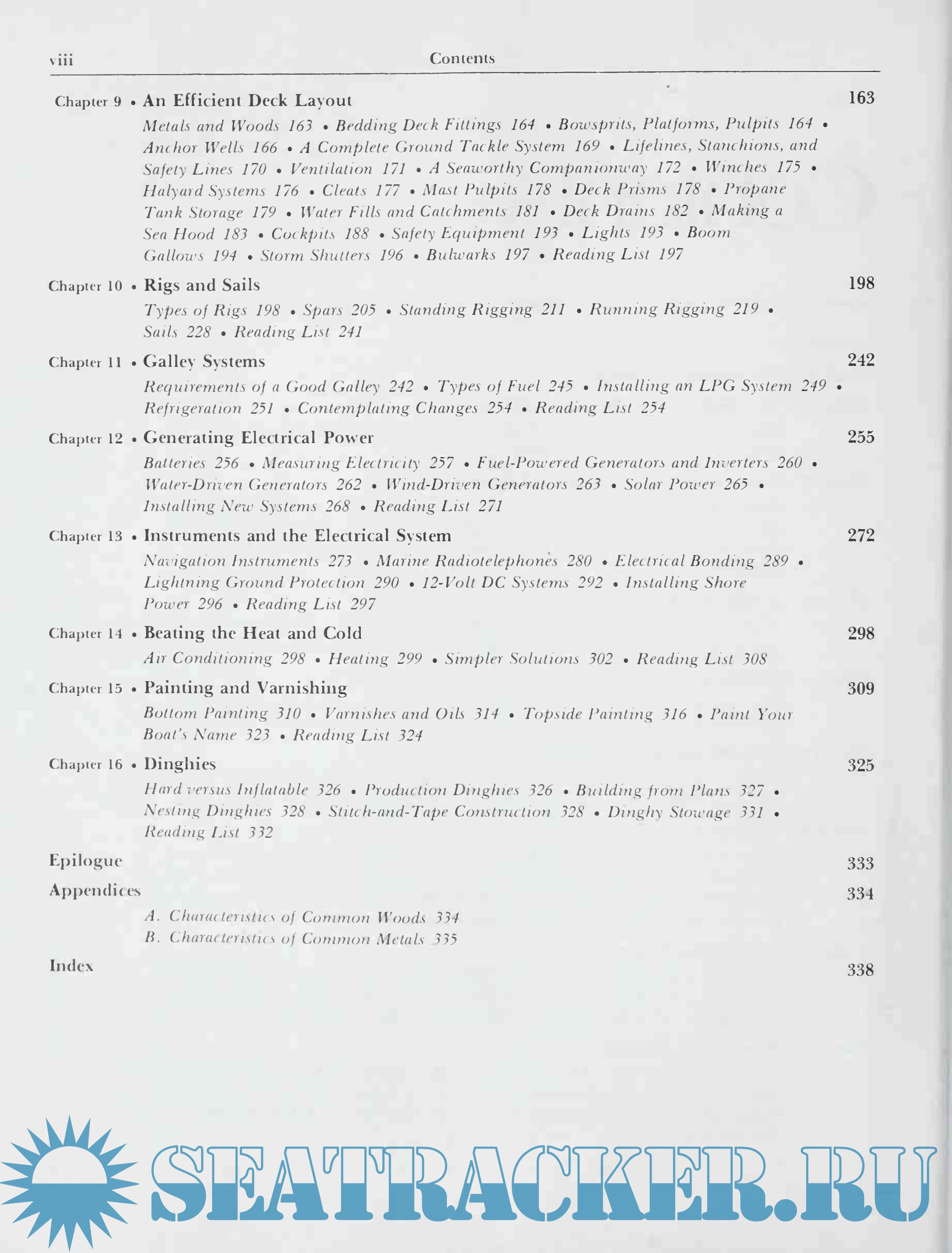 The gear, equipment, design, and construction standards cited in this book--often in very specific detail with brand-name recommendations--are as useful for evaluating a new boat as they are for buying a used boat or improving the boat you already own.