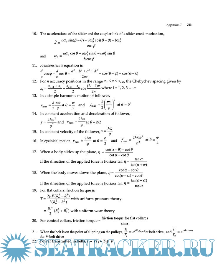 Year: 2009 Language: english Author: S. S. Rattan Publisher: Tata McGraw Hill Edition: 3rd ISBN: 978-0-07-014477-4 Format: PDF Quality: OCR with errors Pages count: 732 Description: The ‘Theory of Machines’ by S. S. Rattan is a book that is designed for the students pursuing undergraduate degree across various engineering courses. The syllabus of the book includes an in-depth analysis on Kinematics and the Dynamics of Machinery. The book features the recent advancements and developments on the new mechanisms and explains the underlying principles of kinematics. The book has a credible practice section to help the students test their understanding of the chapters. The questions are based on theoretical concepts. The examples and illustrations have been explained well along with well labeled diagrams to ease the understanding quotient of the student.