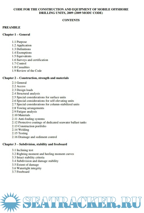 MODU code 2009 CODE FOR THE CONSTRUCTION AND EQUIPMENT OF MOBILE OFFSHORE DRILLING UNITS