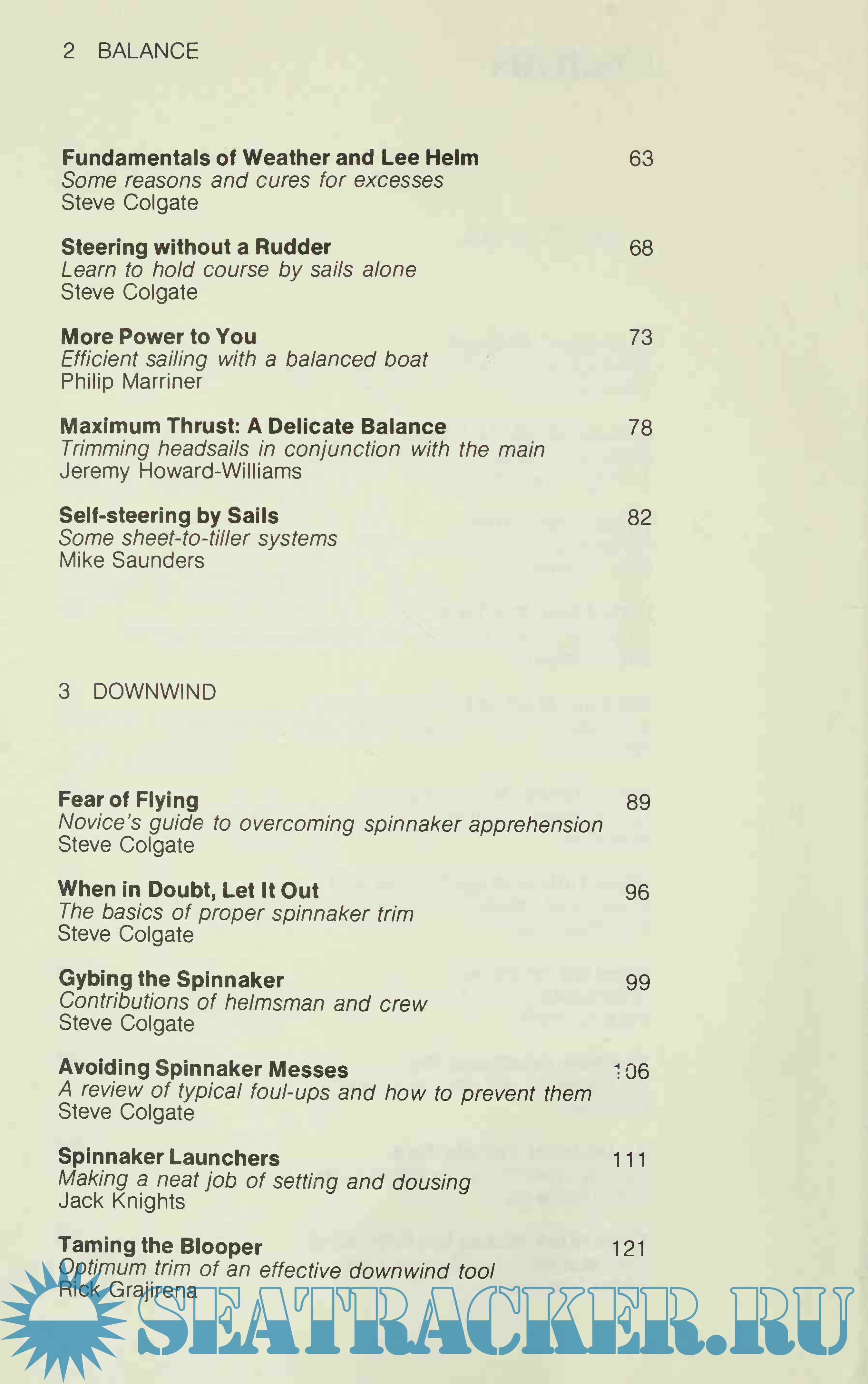 • Covers shape, balance, downwind sailing, heavy weather,