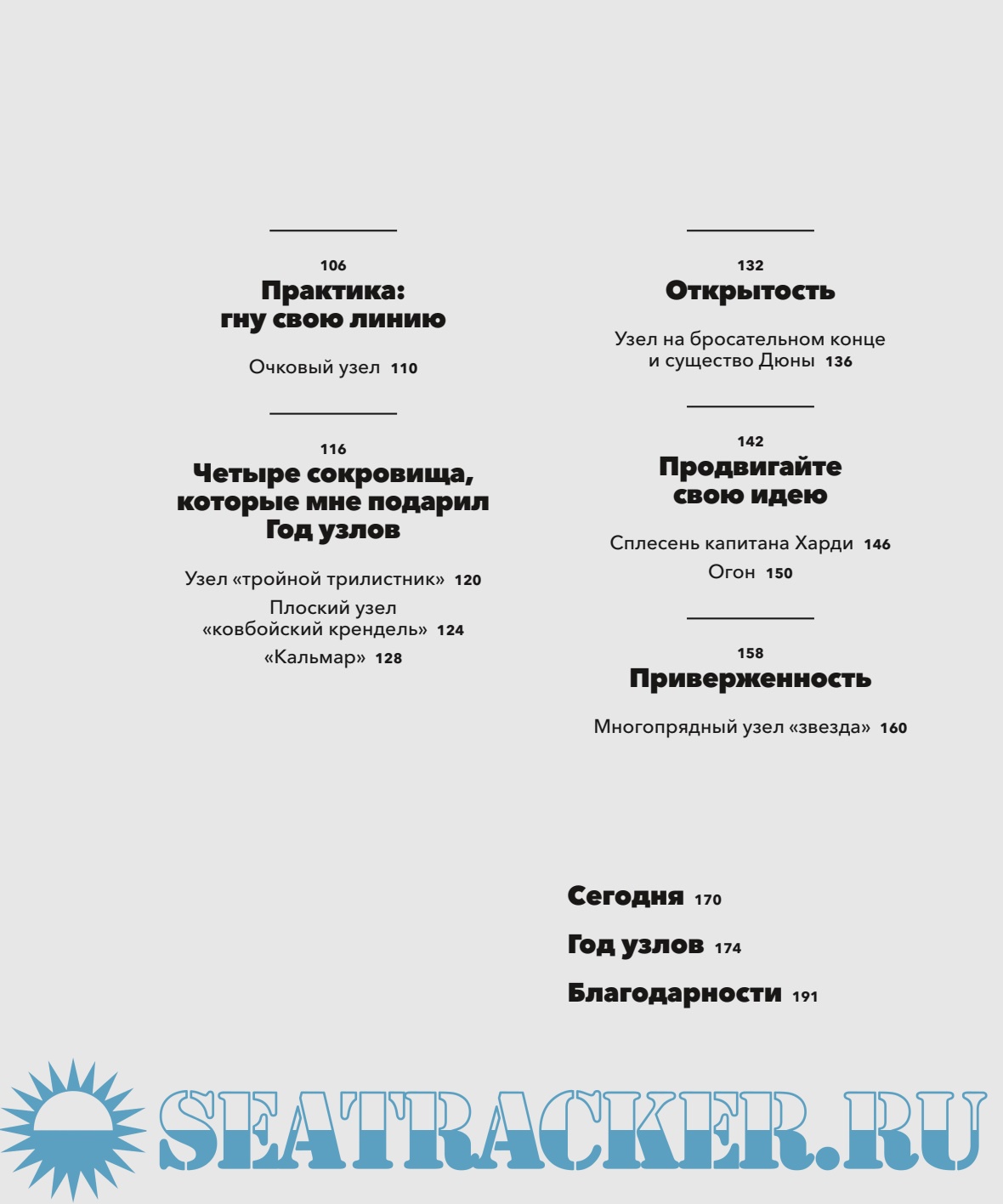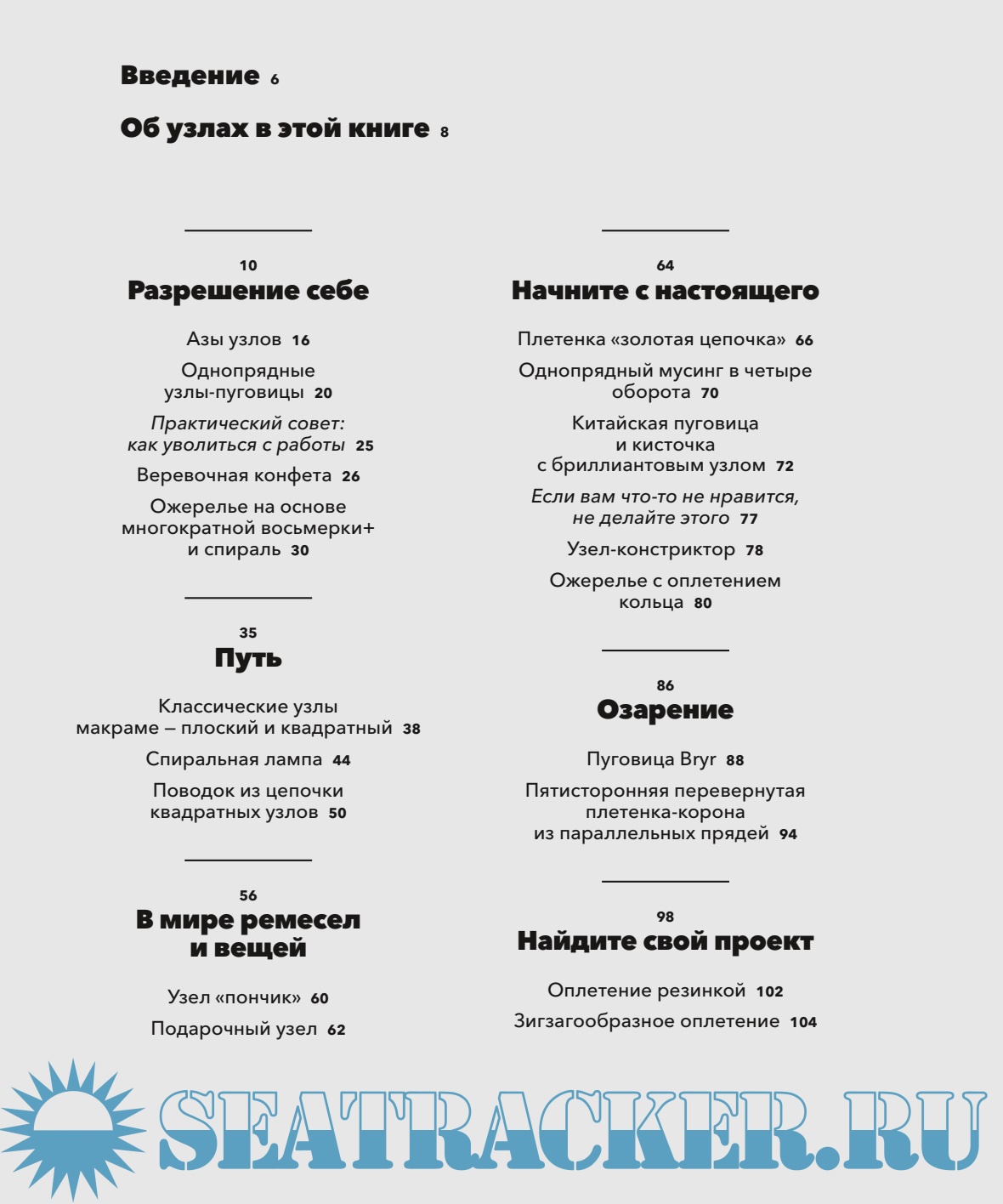 Здесь есть уроки и личные истории, вдохновляющие читателей творить и медитировать. Подробные иллюстрации — фотографии, показывающие каждый этап создания узлов. Есть здесь и несколько проектов готовых изделий: ожерелье, поводок для собаки, а также стенные панно и подвесная лампа. И в основе всего — простая, но очень вдохновляющая мысль о том, что за недолгий срок вы можете совершить творческий прорыв, который изменит вашу жизнь — порой гибкую и податливую, как хлопковая веревка.