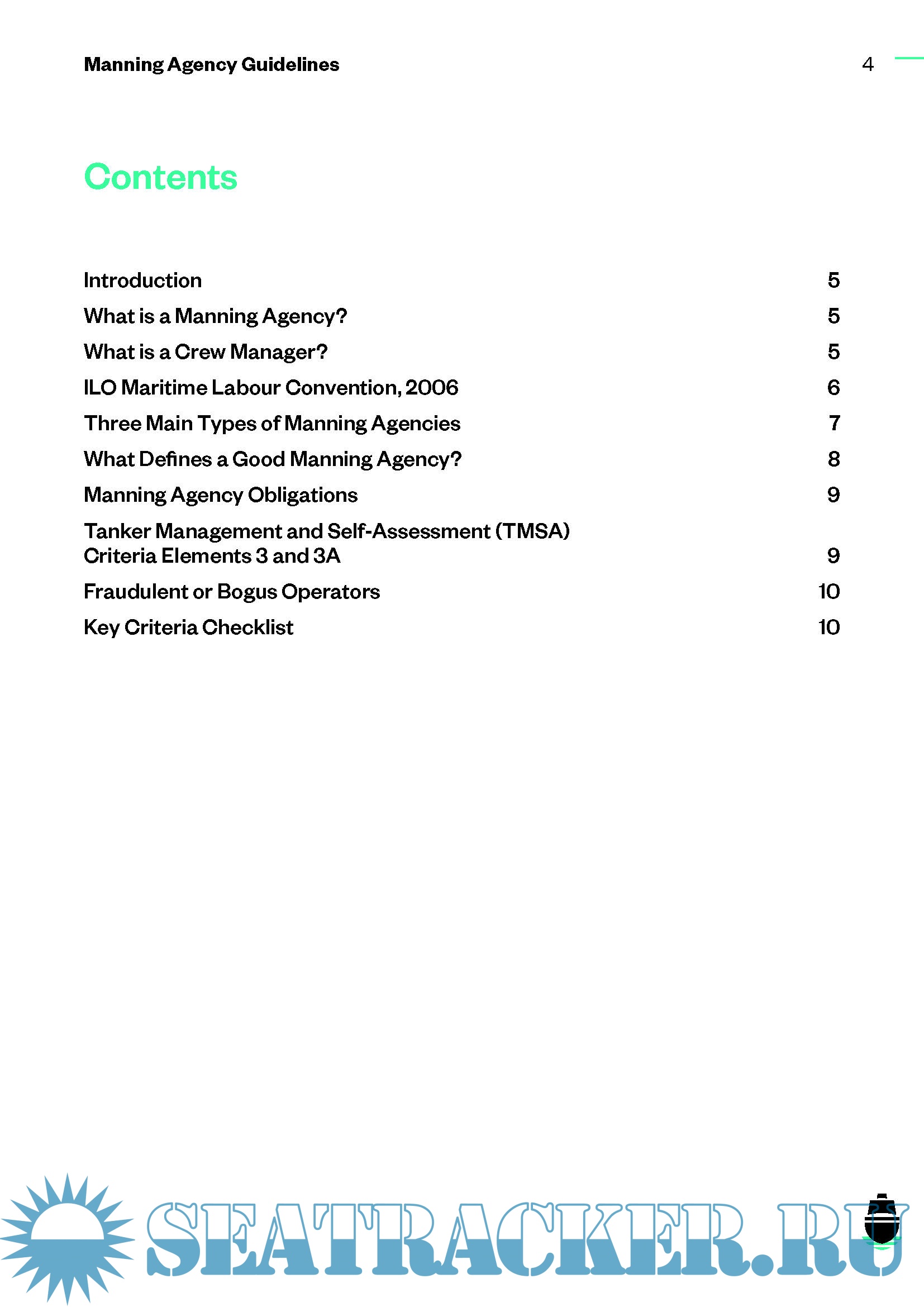 Year: 2021 Language: english Author: ICS Publisher: ICS Edition: 1st edition, September 2021 Format: PDF Quality: eBook Pages count: 11 Description: These guidelines have been produced to help shipping companies choose reputable manning agencies and to ensure that seafarers are recruited in line with the requirements of the ILO Maritime Labour Convention 2006 (MLC, 2006). The guidelines aim to: • Provide clear advice to companies on what to consider when identifying a manning agency; • Advise shipping or ship management companies which have their own internal or ‘owned’ manning agencies, on how to operate them in line with legal requirements and best practice; • Ensure companies know how to audit manning agencies to the IMO International Safety Management Code (ISM) and the ILO MLC, 2006 requirements; • Encourage governments to operate systems to regulate recruitment and placement services for seafarers in accordance with MLC, 2006 through licensing or alternative means; • Advise shipowners what to do when targeted by fraudulent operators that falsely advertise using their name; • Help shipowners ensure their relationship with their manning agencies upholds seafarers’ rights and welfare; and • Strengthen the provisions in the MLC, 2006.