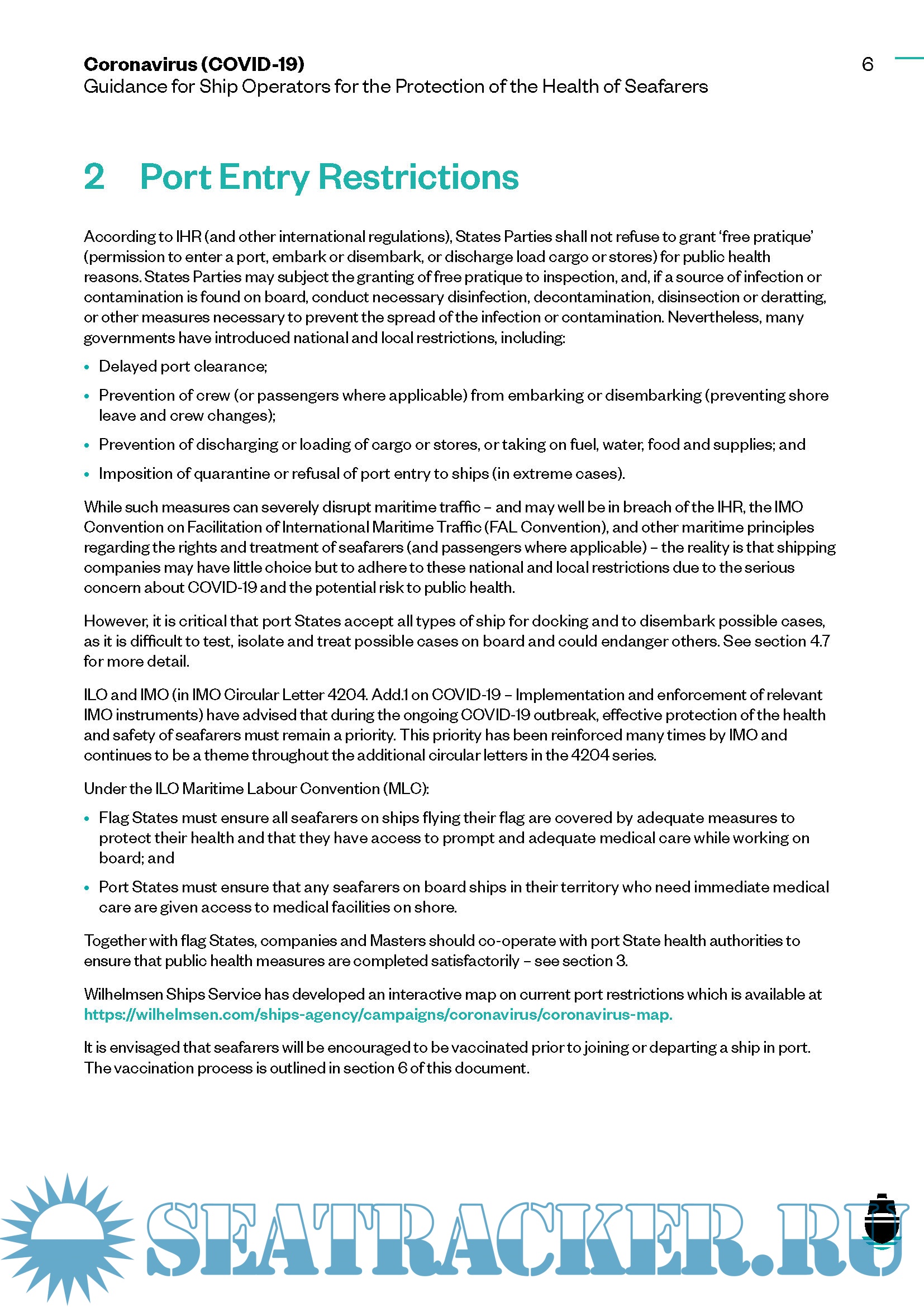 and seafarers follow health advice provided by United Nations agencies and others in response to the