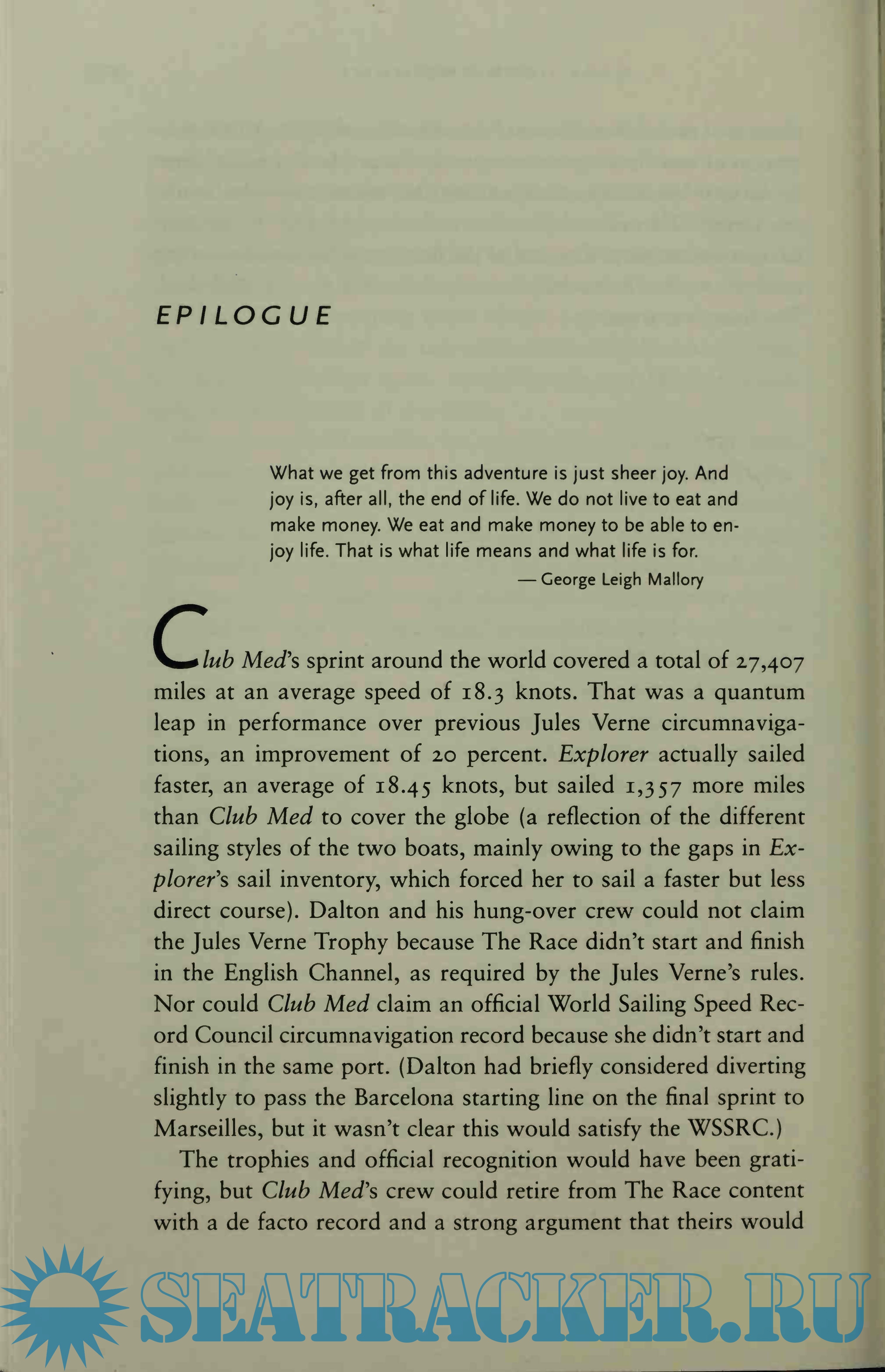 Year: 2002 Language: english Author: Tim Zimmermann Genre: History Publisher: Mariner Books Edition: First ISBN: 0-618-11748-2 Format: PDF + EPUB Quality: Scanned pages Pages count: 358 Description: Experienced sailor and Outside correspondent Zimmermann brings readers to a maritime marathon that circumnavigates the globe in sailing ships that travel up to 50 mph. With winning skippers grabbing monthly purses in excess of $20,000 and massive corporate sponsorship (PlayStation, Team Phillips and Club Med were some of the ships in the running), it should be no surprise that the event drew international recognition. Zimmermann elucidates the technical advancements of racing vessels from clipper ships to yachts to today's high-tech "maxi-catamarans." Armed with GPS systems, the personalities of multimillionaires and crews of 20, six such ships embarked from Barcelona on New Year's Eve 2000, racing past the equator and through the treacherous Southern Ocean to round Cape Horn and onward to port in Marseilles. Zimmermann keeps up the pace with a rapid play-by-play of the race as its contenders fight doldrums, stomach bland diets and dodge gigantic icebergs; he describes how the delicately balanced twin hulls of the maxi-catamarans faced easy damage in severe waves and poor weather. In the end, only two of the ships completed the voyage. Despite Zimmermann's technical moxie, the dramatic flair here is surprisingly lackluster and the story floods into an obligatory tale of man's embittered drive to conquer the elements. A sure bet for maritime racing fans and extreme sporting enthusiasts, the book might not have enough ballast to float the open waters of mainstream readers. You don't have to be a racing sailor to love this book. Armchair racing sailors can get a tremendous lift from reading the challenges these sailors face. In the polar seas of the Southern Ocean and the financial boardrooms, the opposition is tremendous. Nothing like pouring vast sums of money into a hole in the ocean, then being bested by Mother Nature. Kept me up at night shivering, and loved every minute.
