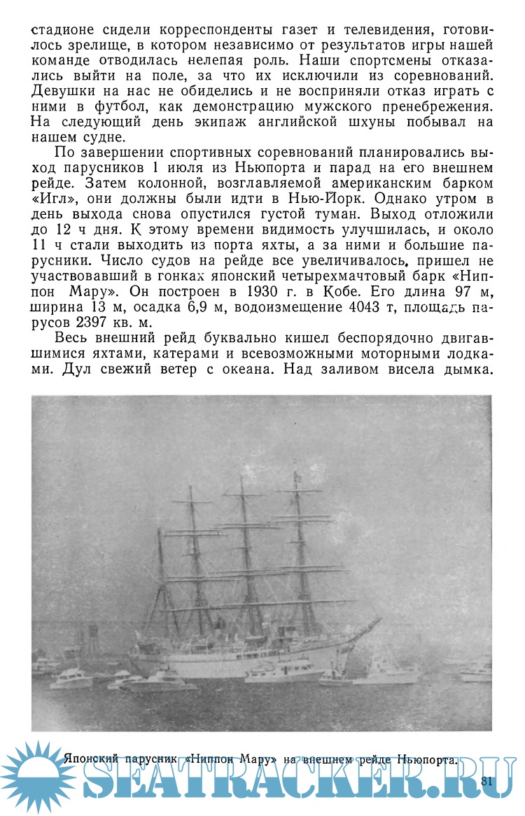 Описание: В книге, представляющей собой путевые заметки автора, рассказано о рейсе советского парусного судна "Товарищ" по маршруту Вентспилс - Гетеборг - Плимут - Канарские острова - Бермудские острова - Ньюпорт - Нью-Йорк - Азорские острова - Сеута - Пирей - Одесса и его участии в международной парусной регате Операция Парус-76. Читатель узнает историю и правила проведения международных соревнований, познакомится с их участниками, а также с современными учебными парусными судами. Книга предназначена для широкого круга читателей, интересующихся парусным спортом и морскими путешествиями.
