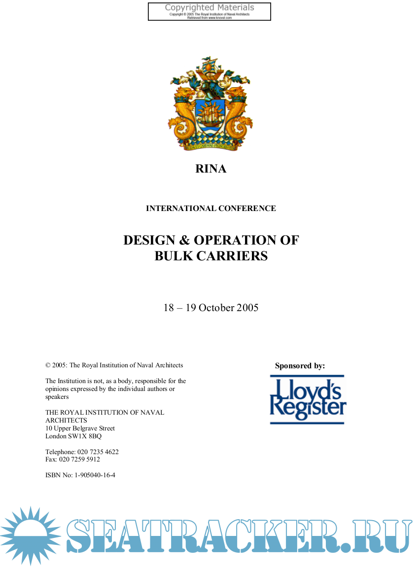Design and Operation of Bulk Carriers - RINA [2009, PDF]