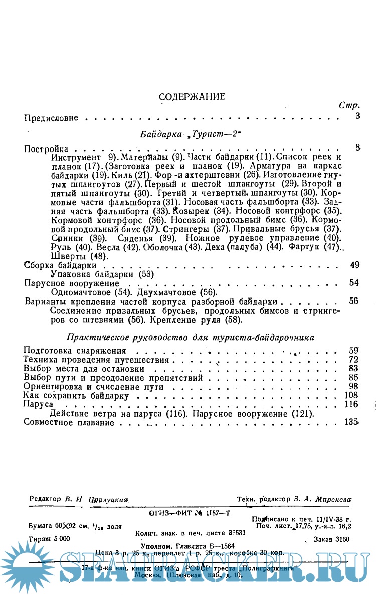 Год выпуска: 1938 Язык: русский Автор: Благодарев С.А. Брызгалов В.И. Жанр: Руководство Издательство: Физкультура и туризм Формат: PDF Качество: Отсканированные страницы Количество страниц: 148 Описание: В книге даны подробные инструкции к постройке разборной байдарки, приложены чертежи. А также правила и секреты плавания на байдарке по маршрутам любой сложности.