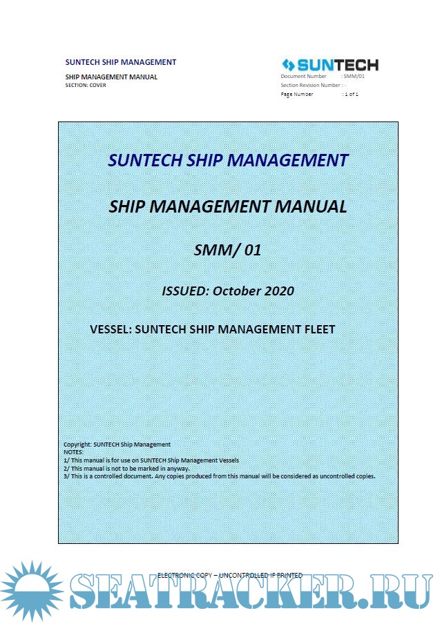 Description: Ship Management Manual for vessels managed by suntech Ship Management.