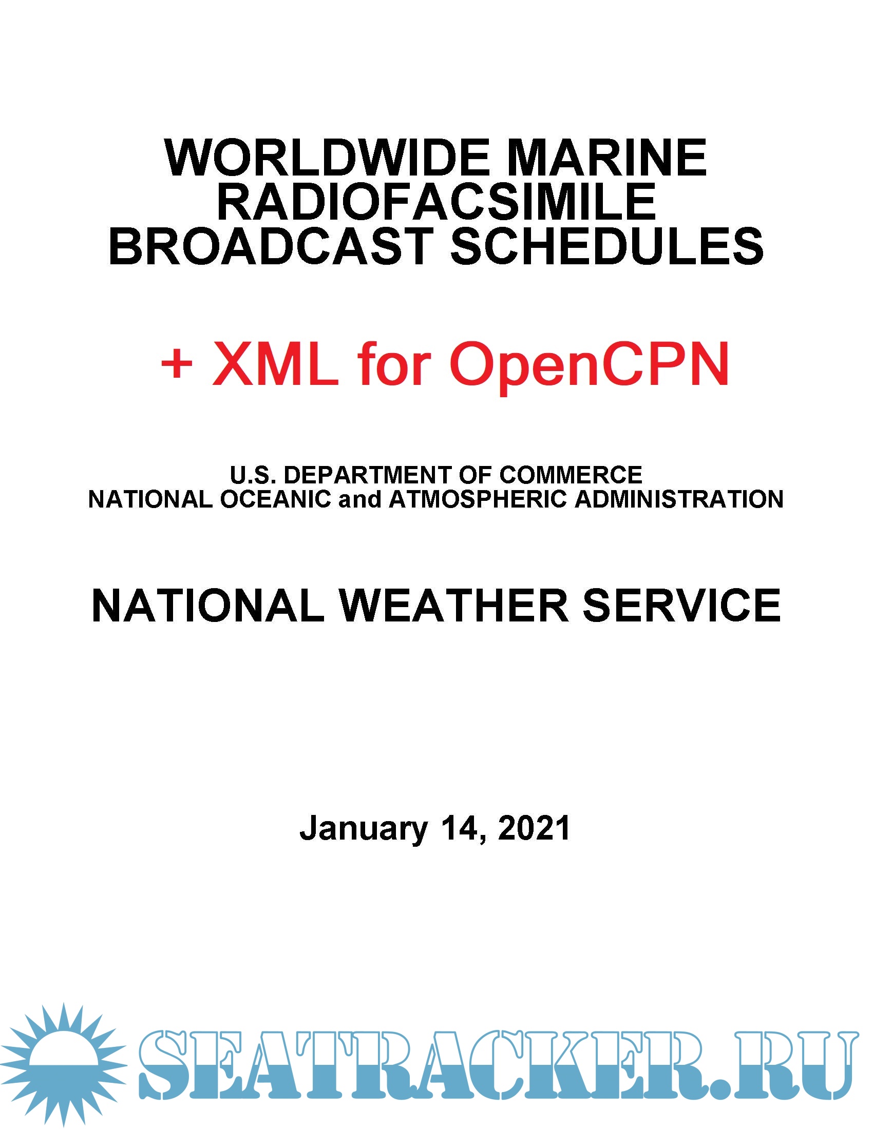 Description: "WorldWide Marine Radiofacsimile Broadcast Schedules" 2021 (NOAA) and XML files for "weatherfax" plugin of OpenCPN for receiving (via internet) weather and ice information on the Asia-Pacific region.