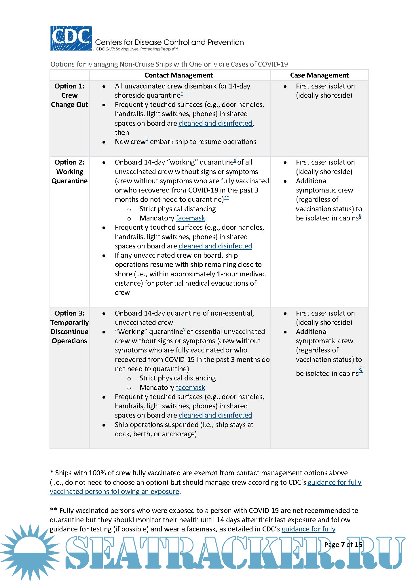 Description: The US Center for Disease Control (CDC) published new guidance to clarify its recommendations for crewmembers who are fully vaccinated. The guidance pertains to ships originating from or porting in the United States to help prevent, detect, report, and medically manage suspected or confirmed COVID-19 cases.