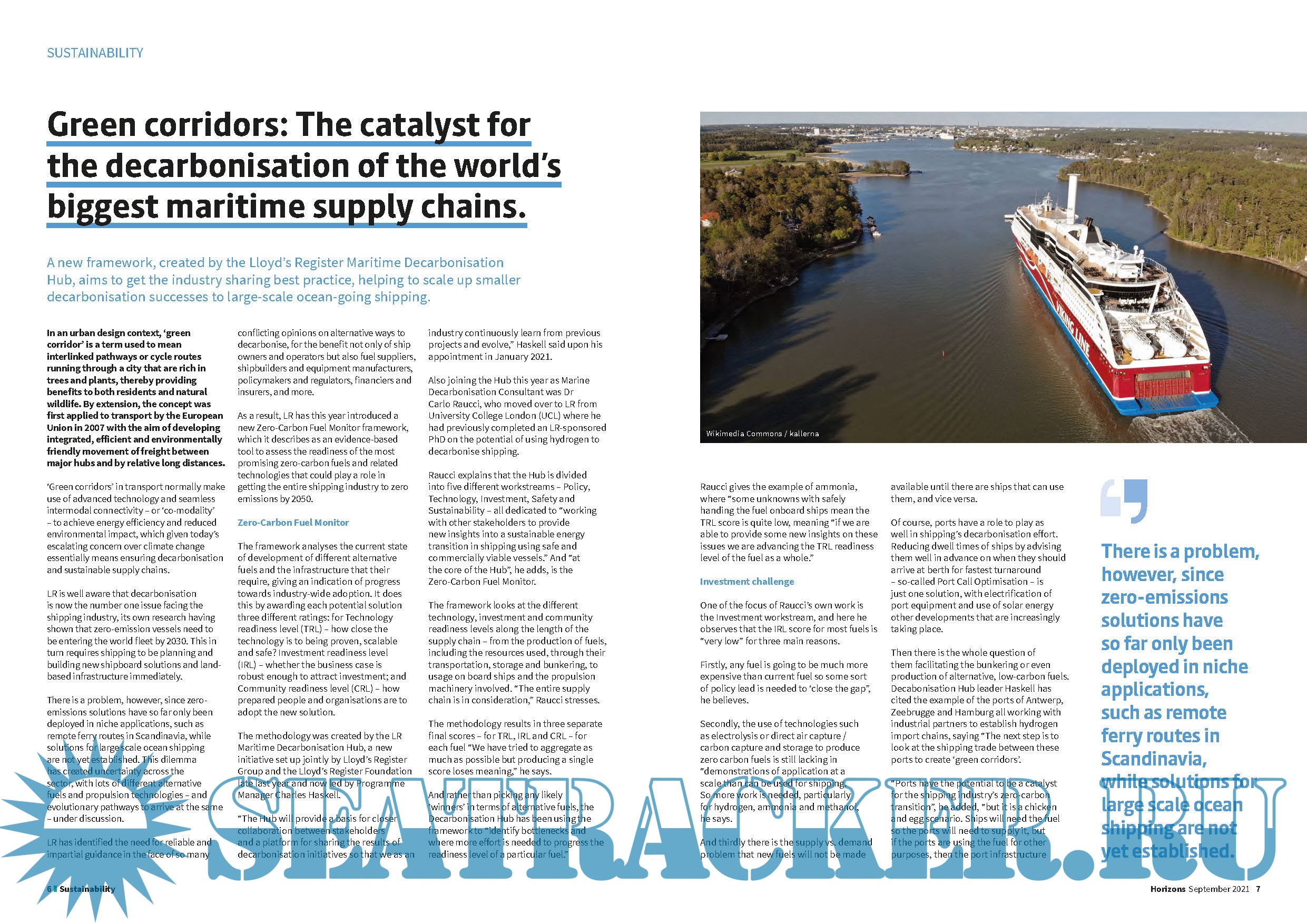 The latest issue of Lloyd’s Register’s Horizons magazine looks at some of the practical solutions that are helping the maritime industry make decarbonisation a reality in the next decade. Read about the pathways that can scale up smaller decarbonisation successes to large-scale ocean-going shipping. Learn about a new framework created by the LR Maritime Decarbonisation Hub and read insights from key stakeholders across the supply chain – Equinor, ABP and the Sustainable Shipping Initiative.