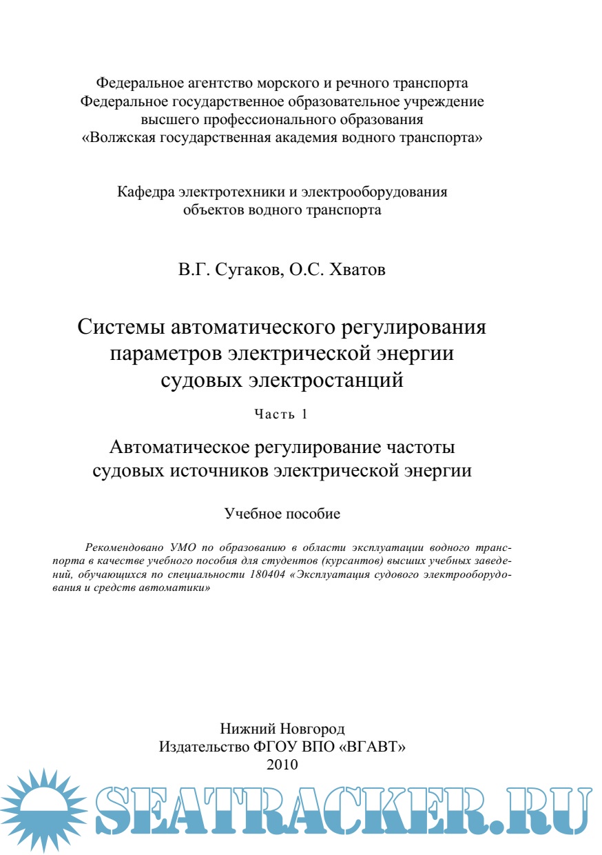 Описание: Рассматриваются вопросы, связанные с теорией, устройством, принципом действия и эксплуатацией регуляторов и систем автоматического регулирования частоты.;Гриф:Рекомендовано УМО по образованию в области эксплуатации водного транспорта в качестве учебного пособия для студентов (курсантов) высших учебных заведений, обучающихся по специальности 180404 «Эксплуатация судового электрооборудования и средств автоматики»