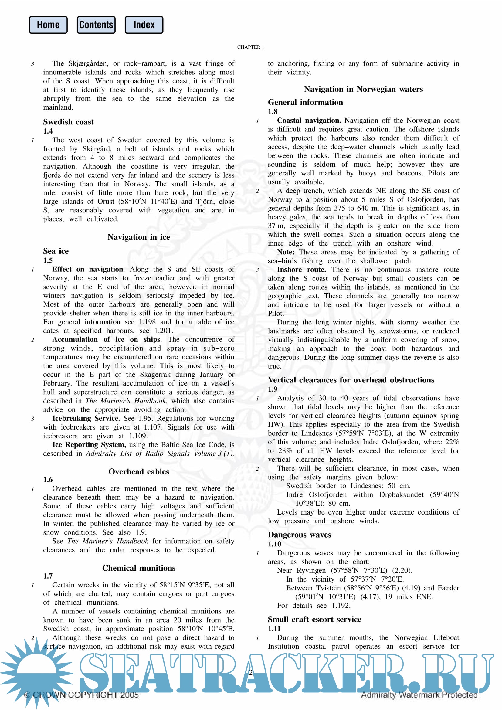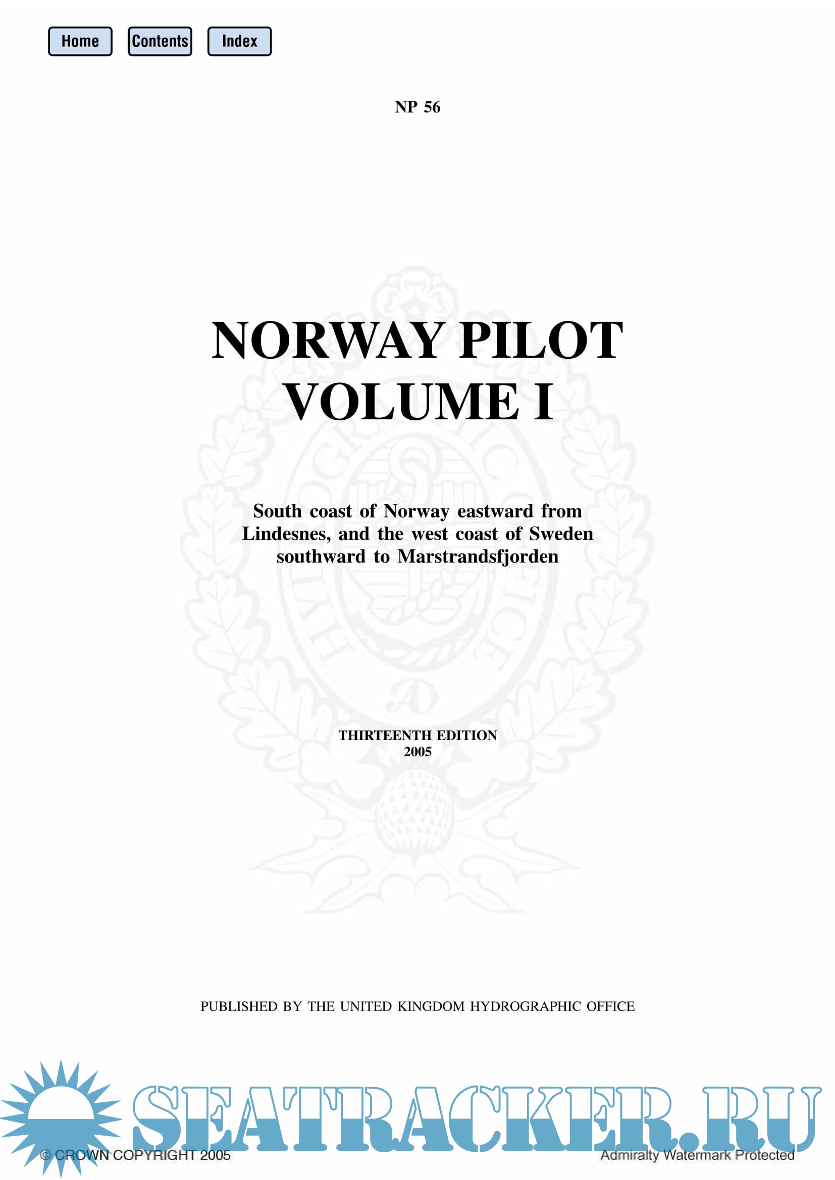 Year: 2005 Language: english Author: The United Kingdom Hydrograpics Office Genre: Reference book Publisher: UKHO Edition: 13 Format: PDF Quality: eBook Pages count: 259 Description: Norway Pilot Vol. I (NP 56) in the British Admiralty Sailing Directions series. It covers the south coast of Norway eastward from Lindesnes, and the west coast of Sweden southward to Marstrandsfjorden.