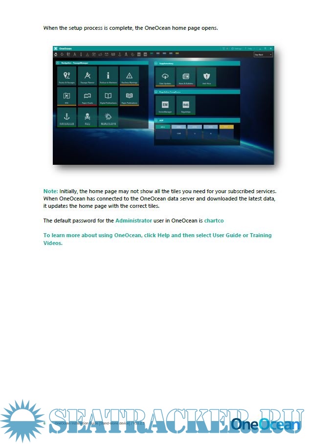 Description: OneOcean is a single platform that you can use to access all OneOcean’s e-navigation and compliance services. In designing it, we’ve retained all the core, valued functionality of PassageManager 6, our previous solution, and added many new features. OneOcean also has a completely new, intuitive look.