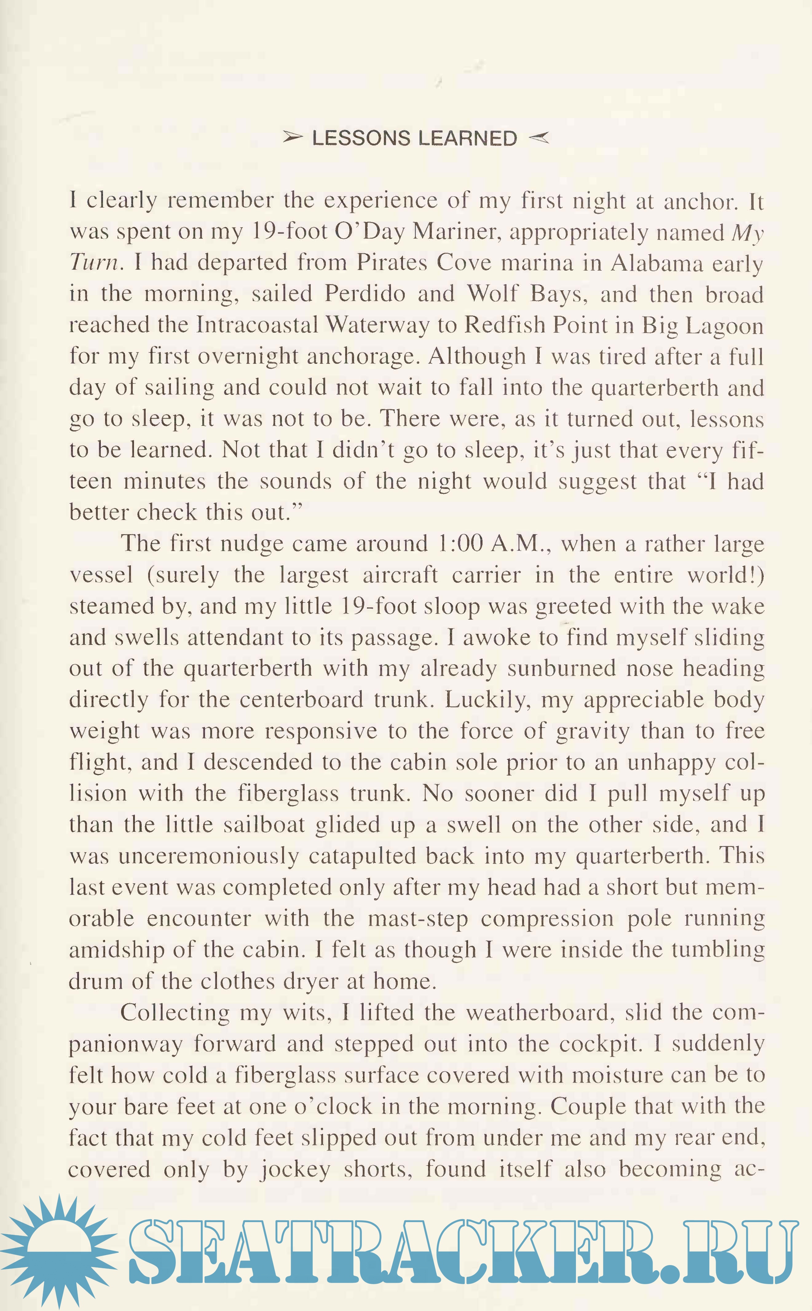 Year: 1997 Language: english Author: Jerry D. Cardwell Genre: Handbook Publisher: Sheridan House Inc. Edition: Second ISBN: 1-57409-007-0 Format: PDF & EPUB Quality: Scanned pages Pages count: 210 Description: Anyone dreaming about owning an affordable sailboat will find the information in this book to be essential. Jerry Caldwell shows how cruising on a small but properly equipped boat that can be kept at home and towed to the water behind the family car is a satisfying and not very costly exercise. Sailors and prospective boat buyers will learn to evaluate boats in the 22- to 26-foot range, such as the Catalina, Hunter and MacGregor, and the equipment and accessories that will enable them to sail BIG on a small sailboat far more easily and for less money than you can "sail small" on a big sailboat. Throughout the book the emphasis is on careful planning and selection of boat and accessories to get the most enjoyment from the least investment. The author of this book has the easy job of convincing you that a small sailboat is cheap and easy to maintain, especially if you can live with a secondhand boat. This book is a well-detailed training manual for boat buying...This book also contains a list of first-aid needs, a list of tool-kit needs, and instructions on caring for your trailer. (The Ensign) Trailersailing is often an affordable way to get into cruising. This book will help you evaluate boats in the 22- to 26-foot range and covers equipment and accessories for this size range that will make your sailing adventures more enjoyable. Includes a chapter on buying used boats. (Cruising World) Jerry Cardwell took the title of his book Sailing Big on a Small Sailboat from his first law of sailing big: You can sail big on a small sailboat far more easily and for much less money that you can sail small on a big sailboat. Additional info: About the Author Jerry Caldwell was an enthusiastic sailor for over 20 years, always in sailboats under 30 feet. He was an academic and the author of several books, including the very successful first two editions of Sailing Big on a Small Sailboat.