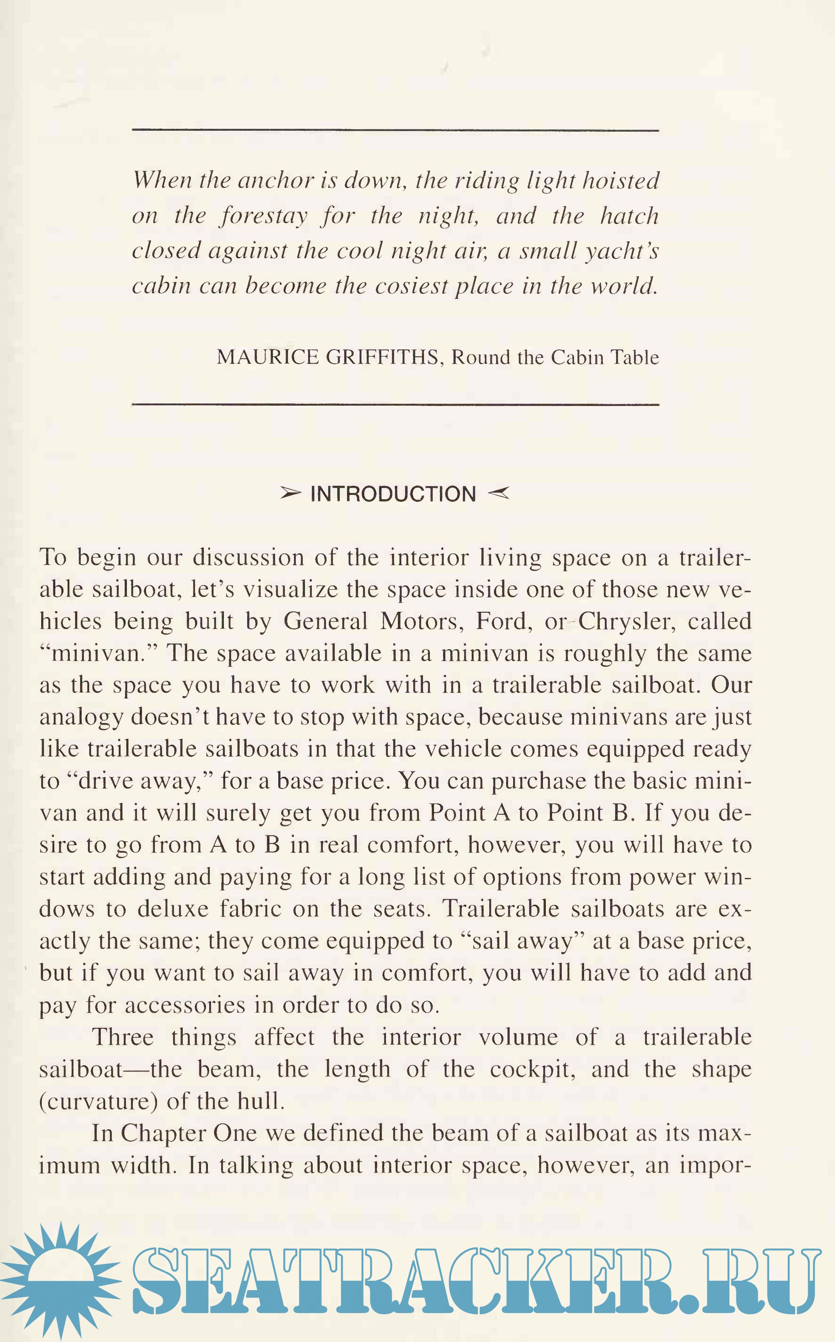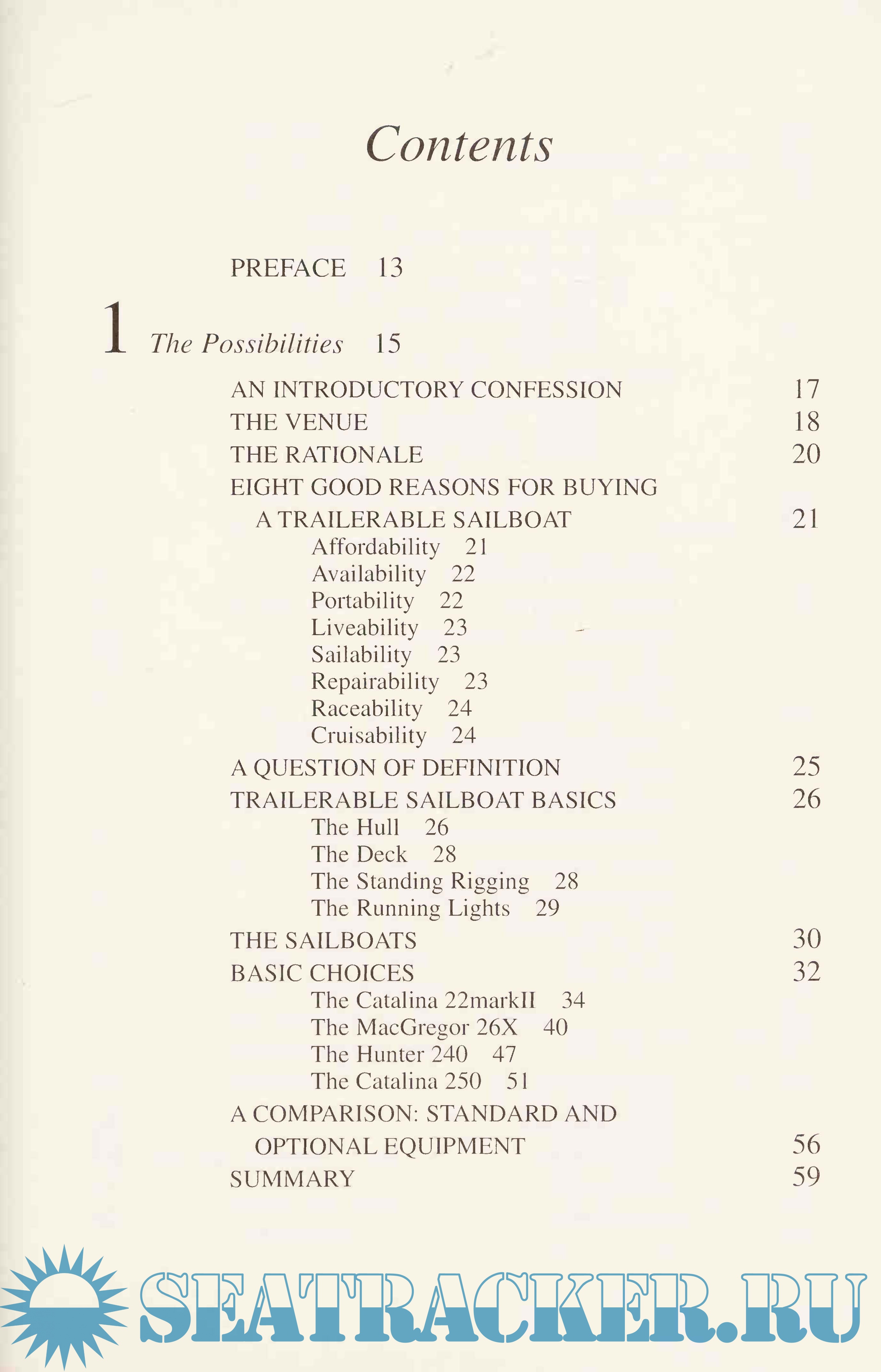 The author of this book has the easy job of convincing you that a small sailboat is cheap and easy to maintain, especially if you can live with a secondhand boat. This book is a well-detailed training manual for boat buying...This book also contains a list of first-aid needs, a list of tool-kit needs, and instructions on caring for your trailer. (The Ensign)