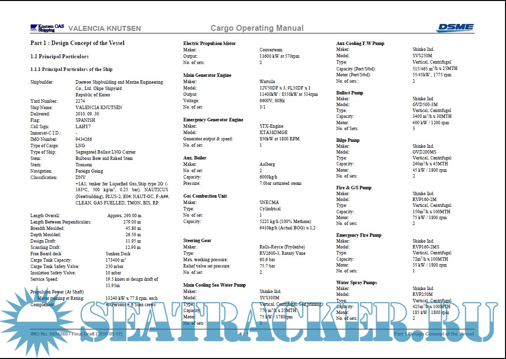 Description: CARGO OPERATING MANUAL OF THE VALENCIA KNUTSEN AN LNG CARRIER DFDE