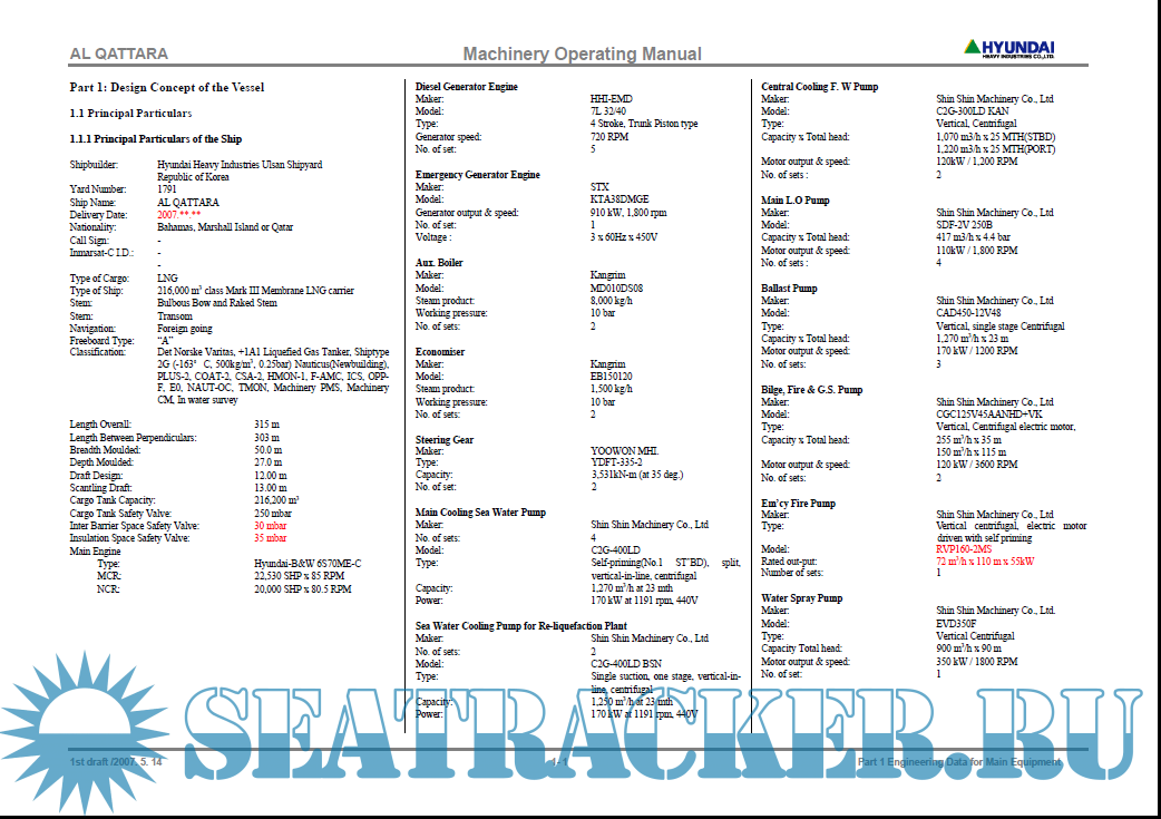 LNGC Grace Acacia - IMO 9315707- Machinery Operating Manual - Hyundai [2007, PDF]