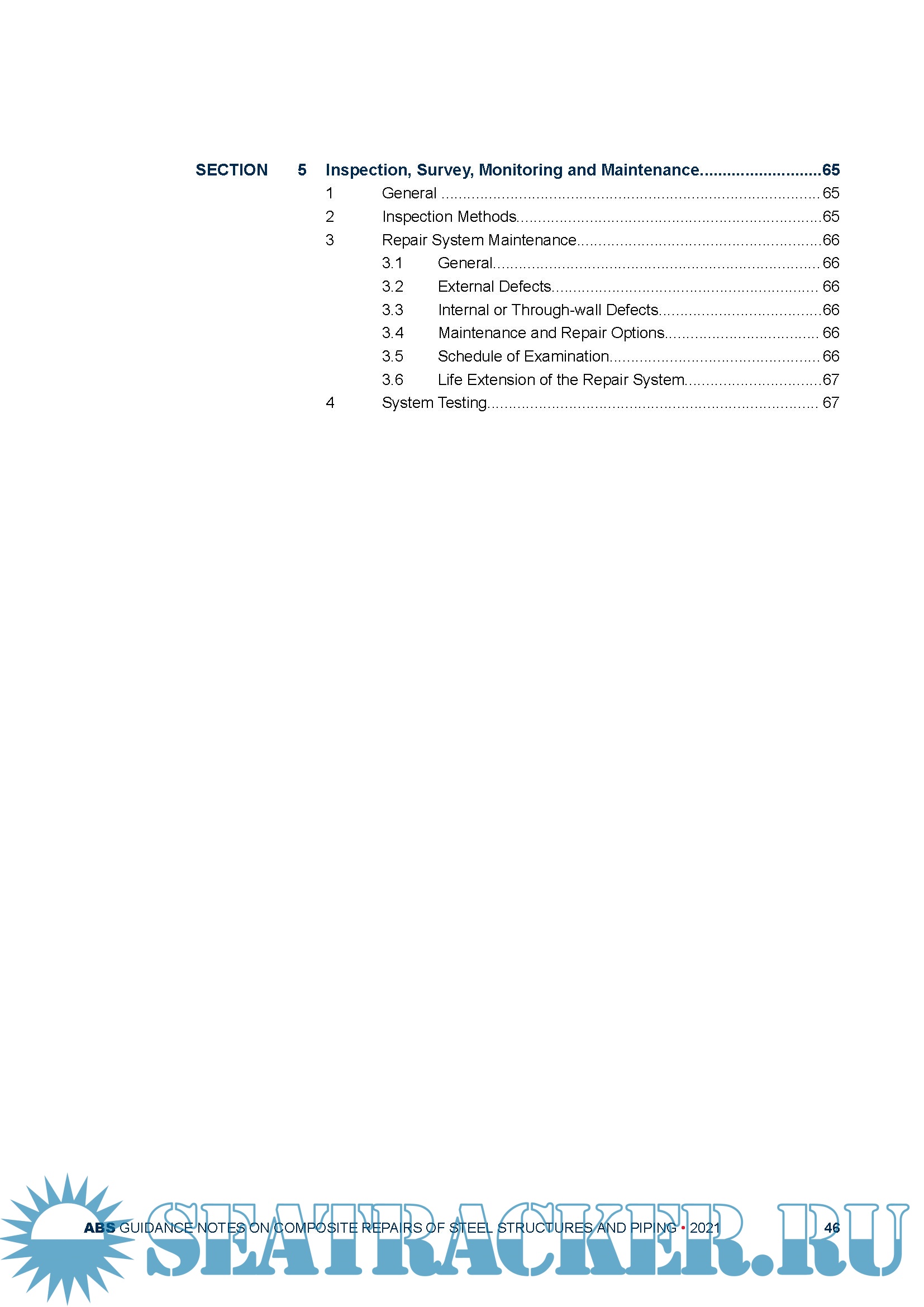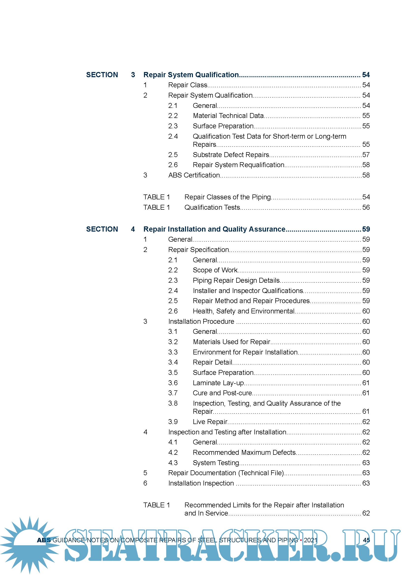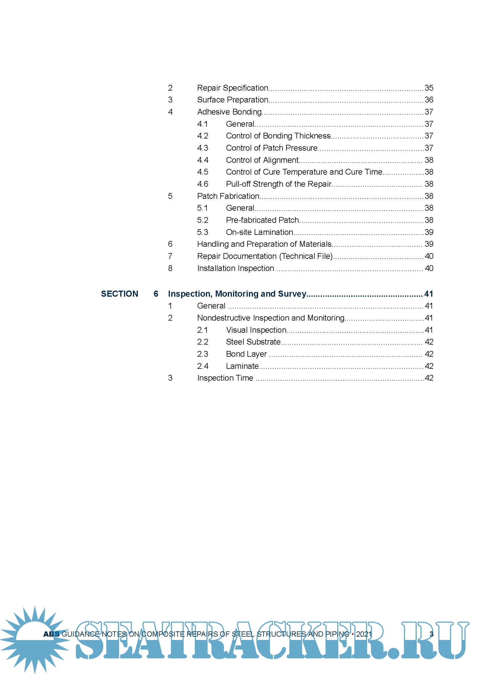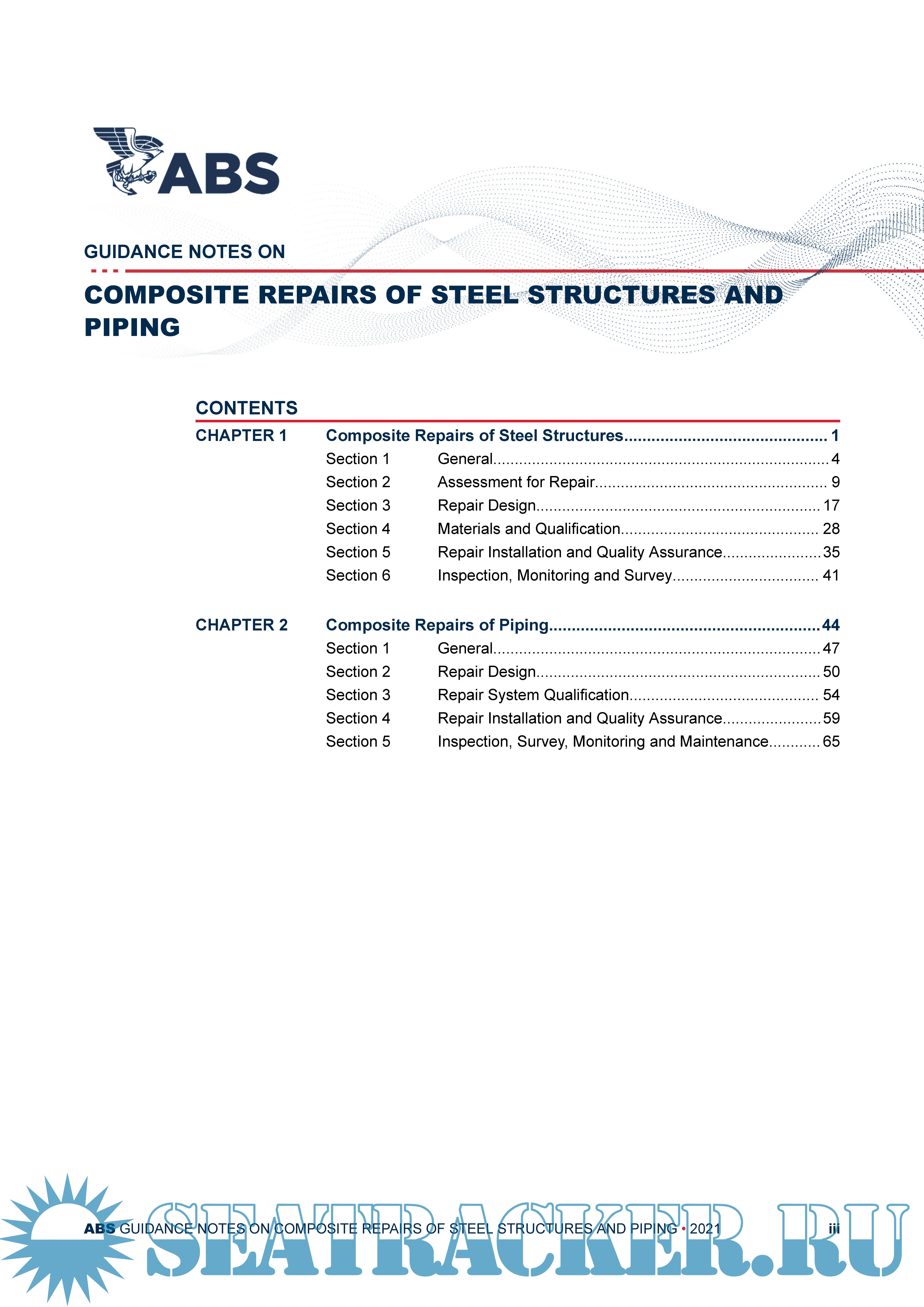 Year: 2021 Language: english Author: ABS Genre: Guide Format: PDF Quality: eBook Pages count: 71 Description: This Chapter is applicable to the use of composite repairs on site-specific offshore units such as FPSOs and FSOs. It provides guidelines on adhesively bonded composite repairs of the steel structures. It covers assessment, design, qualification, installation and inspection of a bonded repair. This Chapter does not cover aluminum structures, even though this guidance may also be applicable to aluminum structure repairs. These Guidance Notes provide an alternative to regular hot work renewal, where the hot work is considered risky to the offshore unit´s operation. Instead of using hot welding, an existing degraded steel structure can be repaired to restore the integrity of the structure by utilizing patches of composite material, steel plates, or other structural materials that are bonded to the degraded steel structure. Release Date: August, 2021