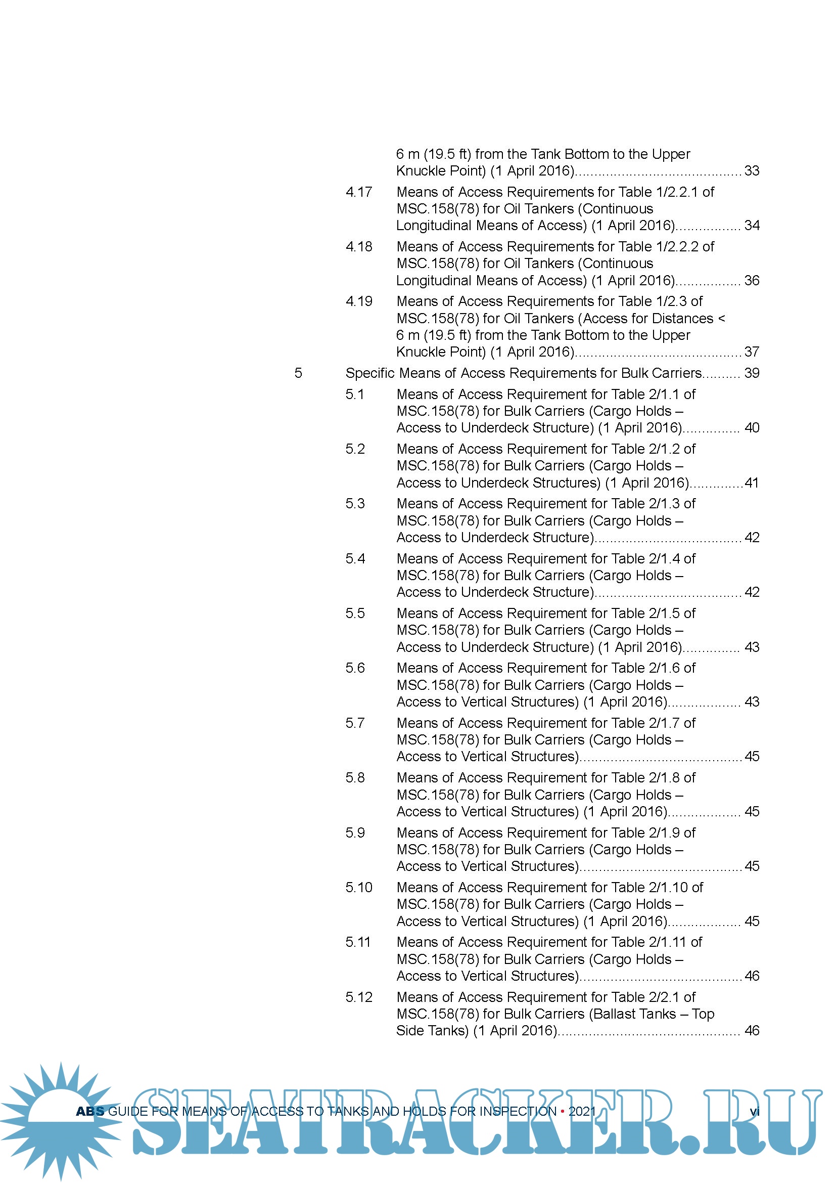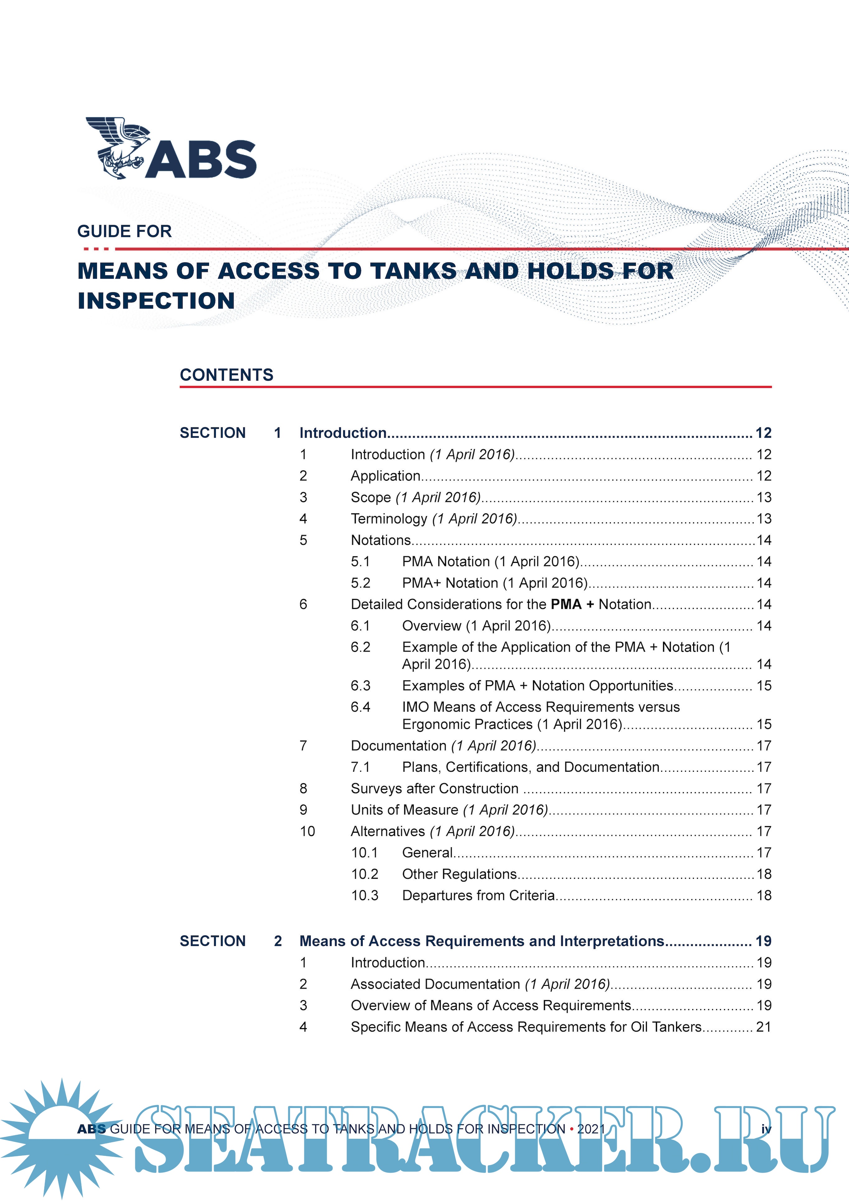 Year: 2021 Language: english Author: ABS Genre: Guide Format: PDF Quality: eBook Pages count: 109 Description: The ability to survey/inspect the condition of a vessel is a principal means to help verify that the vessel’s structure is maintained to comply with applicable requirements. These surveys/inspections assist Owners; flag Administrations and classification societies in determining that vessels are free from damage and that material thickness are within established limits. For surveys/inspections to be carried out safely and effectively, suitable means of access to the vessel’s structure is required. The most recent adoptions to IMO legislation (SOLAS Reg. II-1/3-6) have established new requirements for means of access. Throughout the life of a vessel, this access enables overall and close-up inspections and material thickness measurements of the vessel’s structures. These means of access may be used by Flag Administrations, classification societies, vessel personnel and others as necessary. ABS has prepared the Guide for Means of Access to Tanks and Holds for Inspection. This Guide provides additional information, via text and graphics, about the means of access requirement’s interpretation and application, as well as the criteria for the PMA and PMA + notations. Release Date: September, 2021