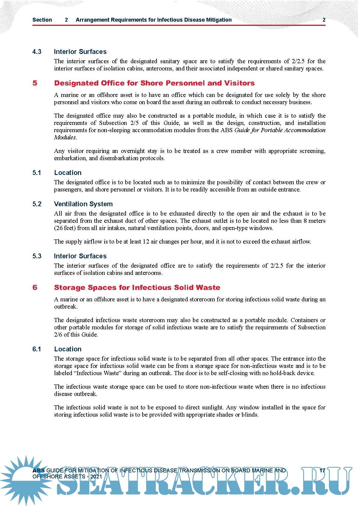 In addition, the Guide addresses the ventilation and interior surfaces of certain accommodation and