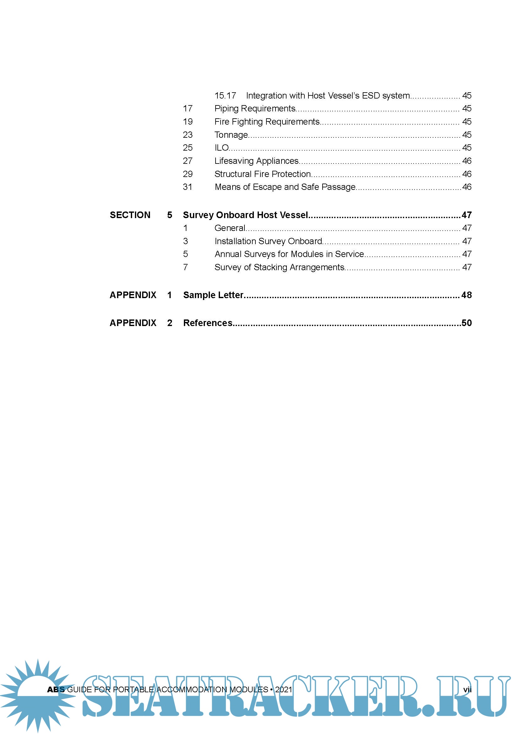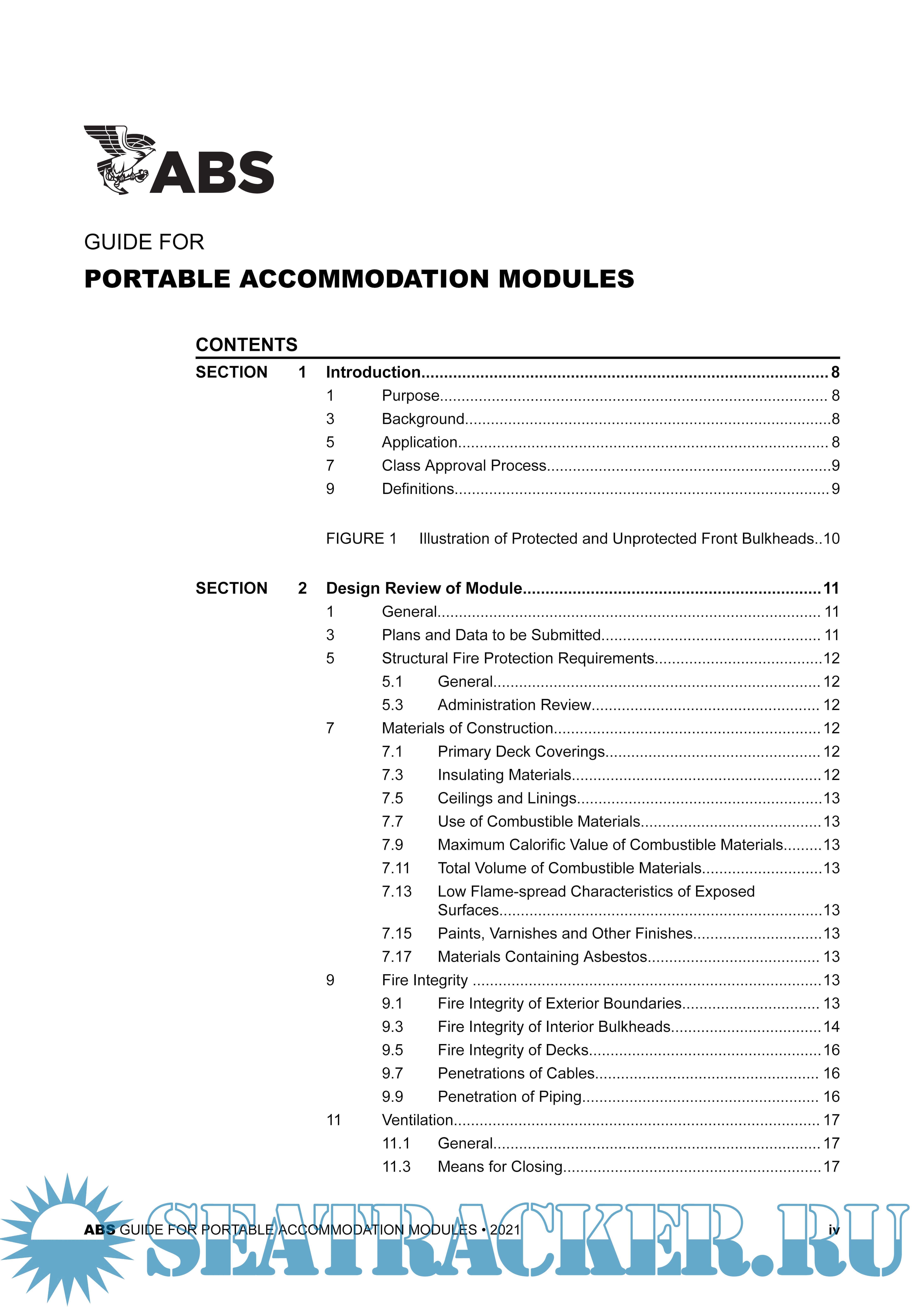 Year: 2021 Language: english Author: ABS Genre: Guide Format: PDF Quality: eBook Pages count: 50 Description: This Guide for Portable Accommodation Modules has been developed to provide a consolidated set of requirements for portable accommodation modules that may be installed onboard a variety of vessels or offshore installations. This Guide outlines requirements for the design and survey of accommodation modules installed onboard Mobile Offshore Drilling Units (MODUs), and Mobile Offshore Units (MOUs), Offshore Installations (fixed or floating), Steel Barges, and Steel Vessels. The Guide may be voluntarily applied to other type of portable modules. Release Date: May, 2021