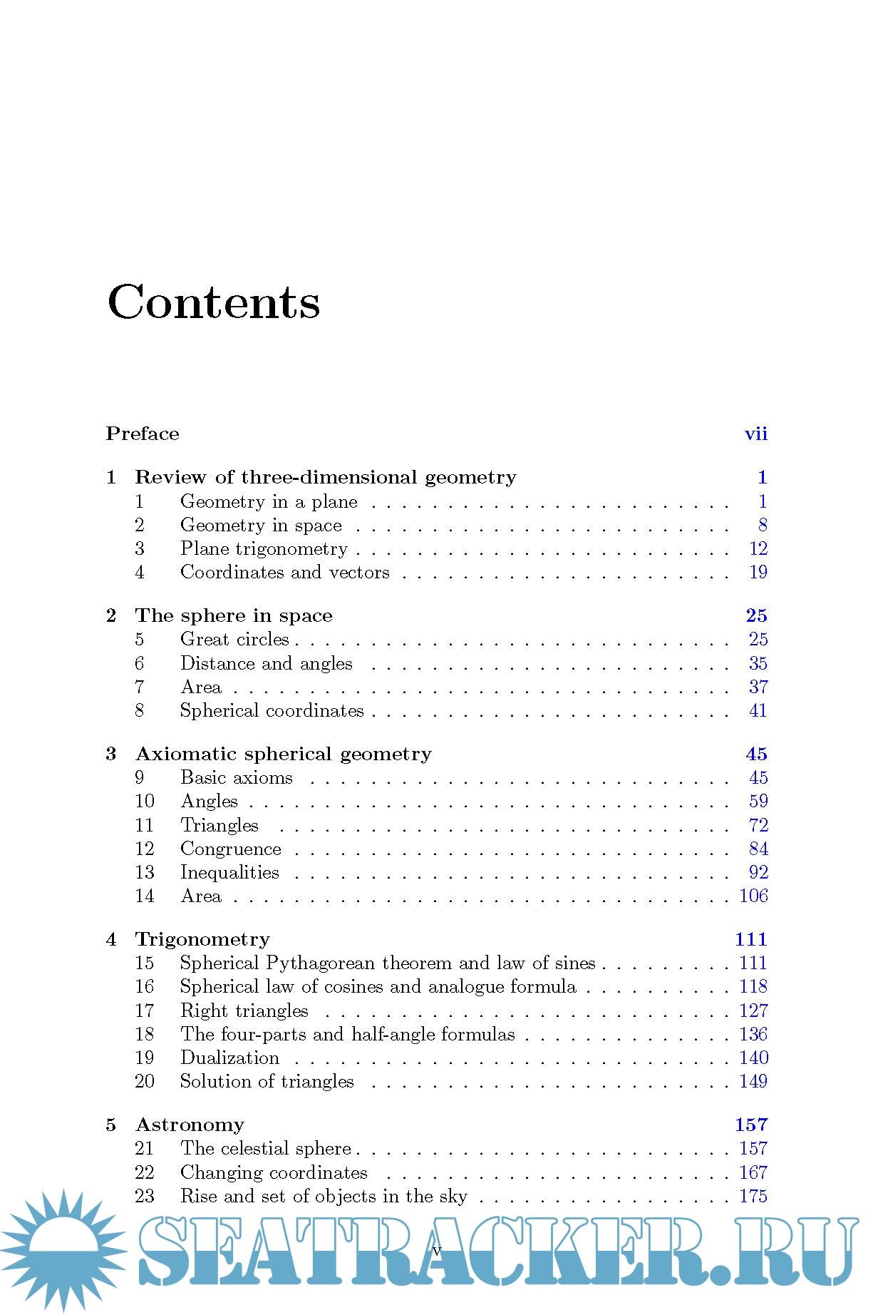 The book introduces an axiomatic system for spherical geometry and uses it to prove the main theorems of the subject. It also provides an alternate approach using quaternions. The author illustrates how a traditional axiomatic system for plane geometry can be modified to produce a different geometric world – but a geometric world that is no less real than the geometric world of the plane.