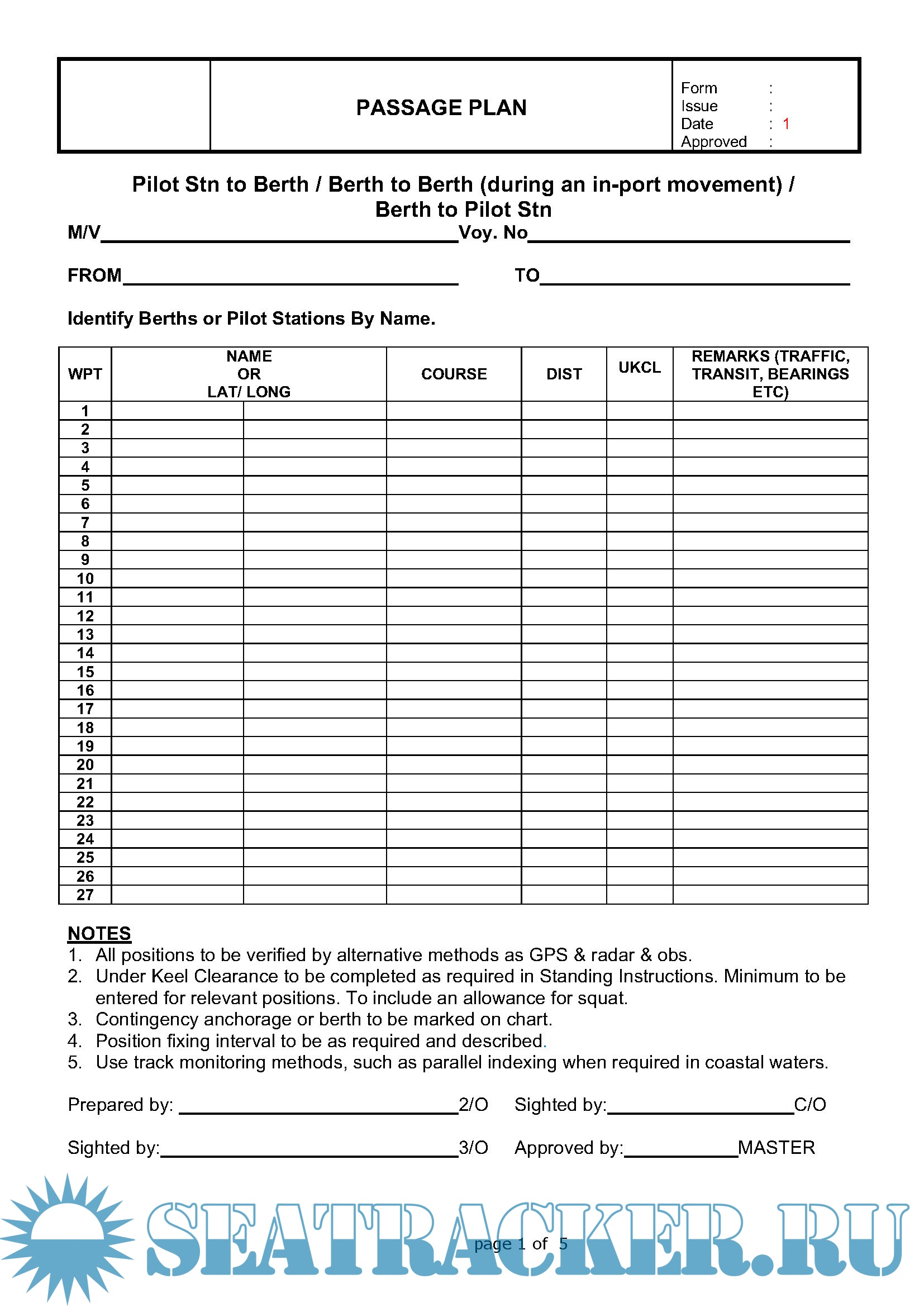 Description: Passage Plan Forms with UKC Caclulation Company templates