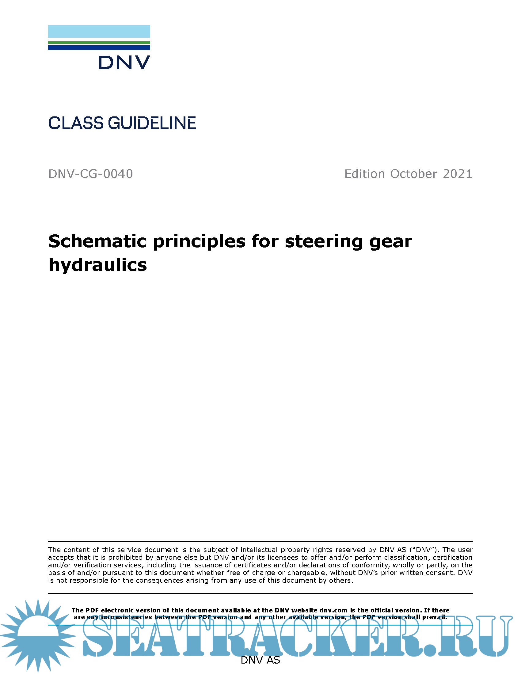 Year: 2021 Language: english Author: DNV Genre: Class Guideline Format: PDF Quality: eBook Pages count: 16 Description: This class guideline is considered to be a supporting document to the DNV rules for classification of ships and the DNV rules for classification of high speed, light craft and naval craft, DNV-RU-SHIP Pt.4 Ch.10 Steering gear. Examples of acceptable arrangements have been given differentiating between various ship types and -sizes. Illustrations of hydraulic systems that satisfy the relevant requirements have been given. Only main components (including relief valves) have been included in order to illustrate the differences in functional requirements related to vessel type and -size.