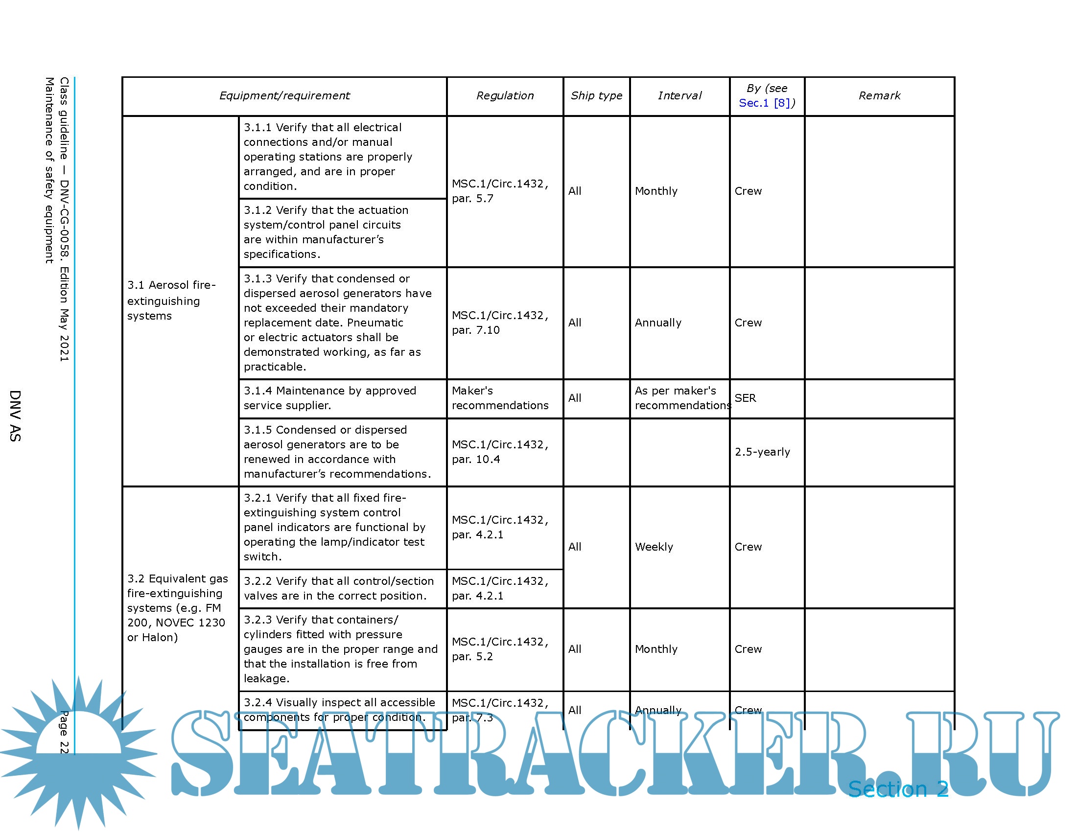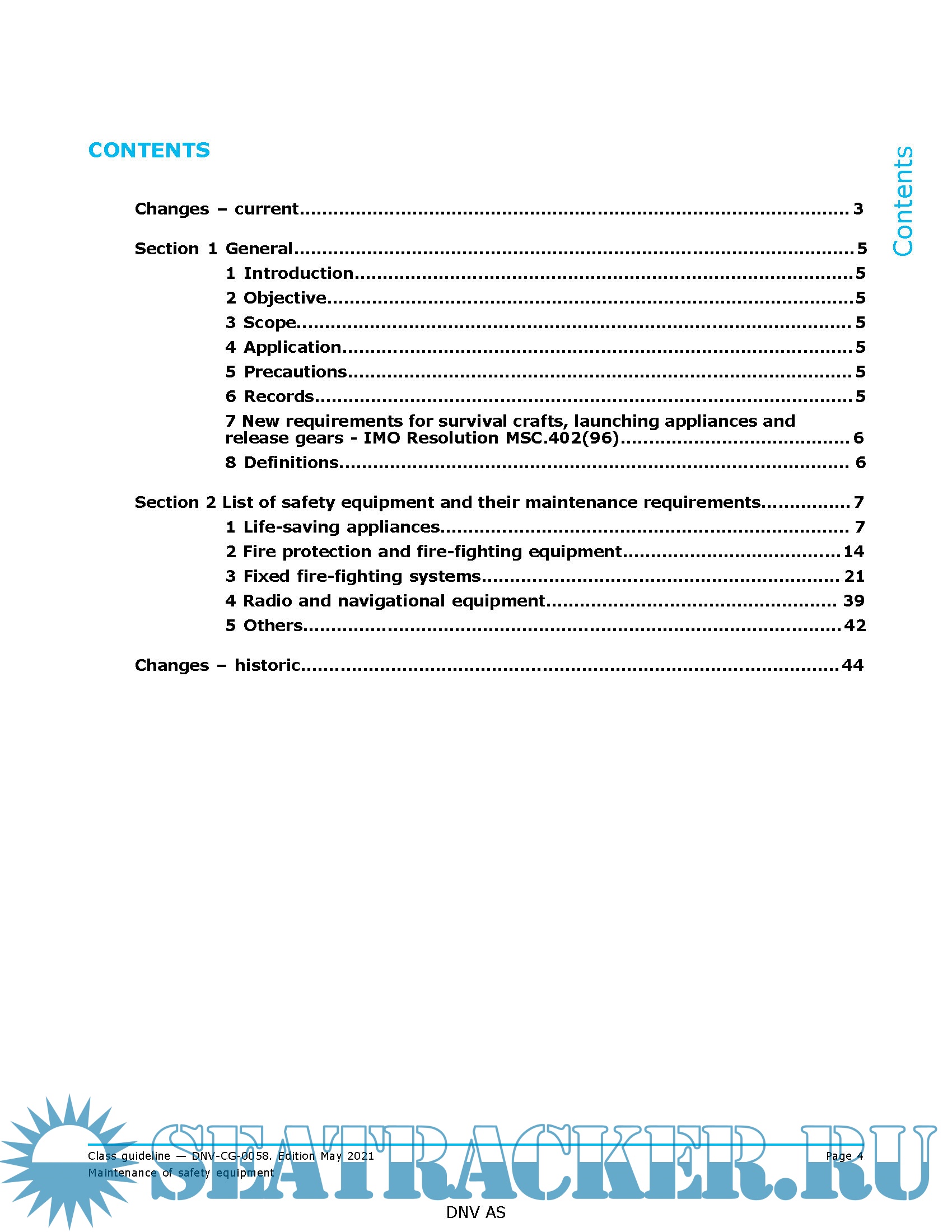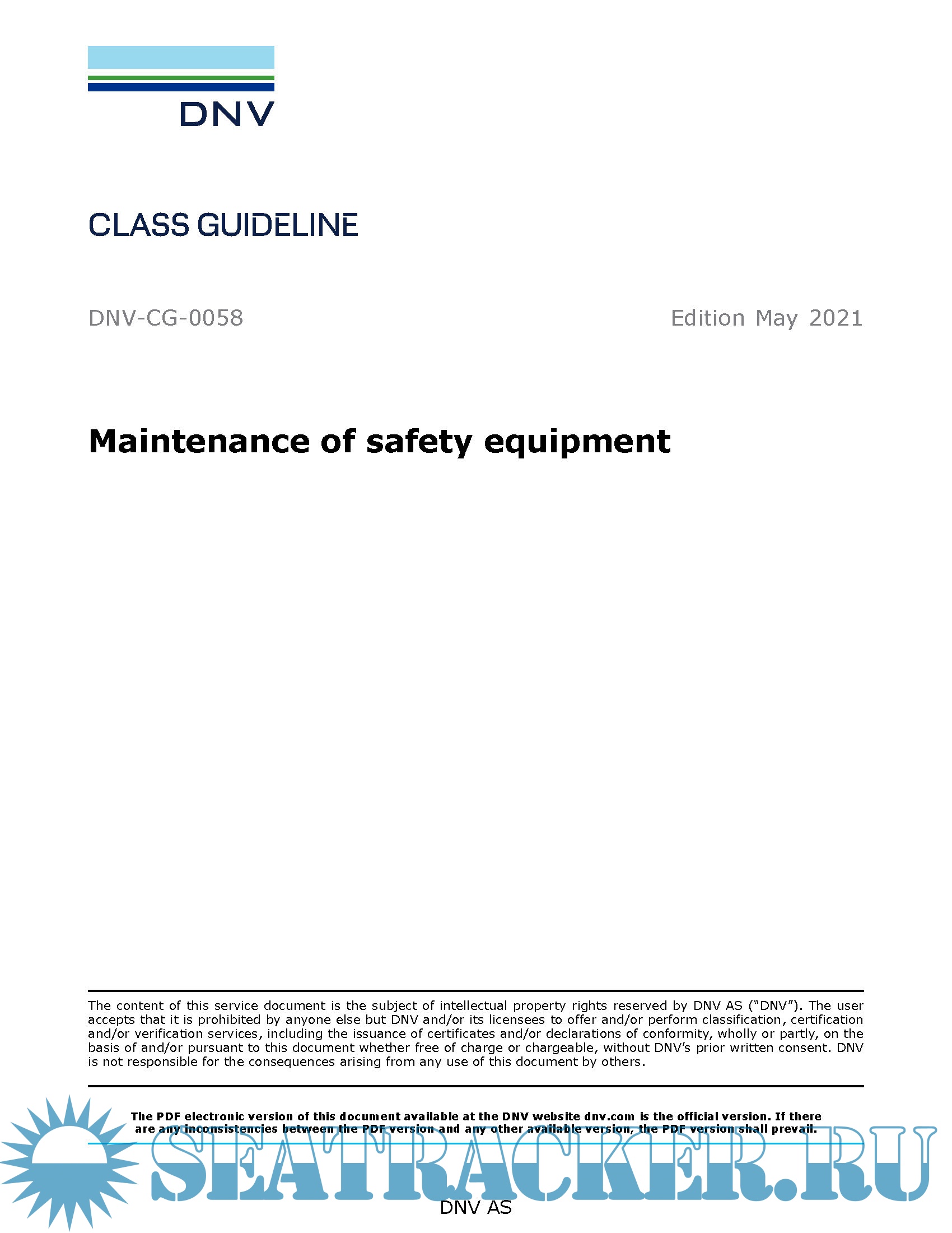 Year: 2021 Language: english Author: DNV Genre: Class Guideline Format: PDF Quality: eBook Pages count: 45 Description: The requirements for inspection and maintenance of vessels' safety equipment can be found in a large number of statutory instruments. Establishing an easy, user-friendly and practical overview of such requirements has proven to be challenging. This overview can now be found in the present document. The objective of this guideline is to provide a compact and practical tool that gives ship owners and operators an overview of all applicable requirements for the inspection and maintenance of vessels' safety equipment. The guideline is written in a table format, see Sec.2, listing all equipment and systems for which SOLAS and other statutory instruments require periodical inspections and maintenance. The tables in Sec.2 also includes the ship type which the requirements are applicable to, the intervals between subsequent inspections and maintenance and indicate which parts of the inspections and maintenance shall be completed by competent crew members or specially trained persons or attended by surveyor. The guideline includes also requirements and recommendations by DNV and IACS.