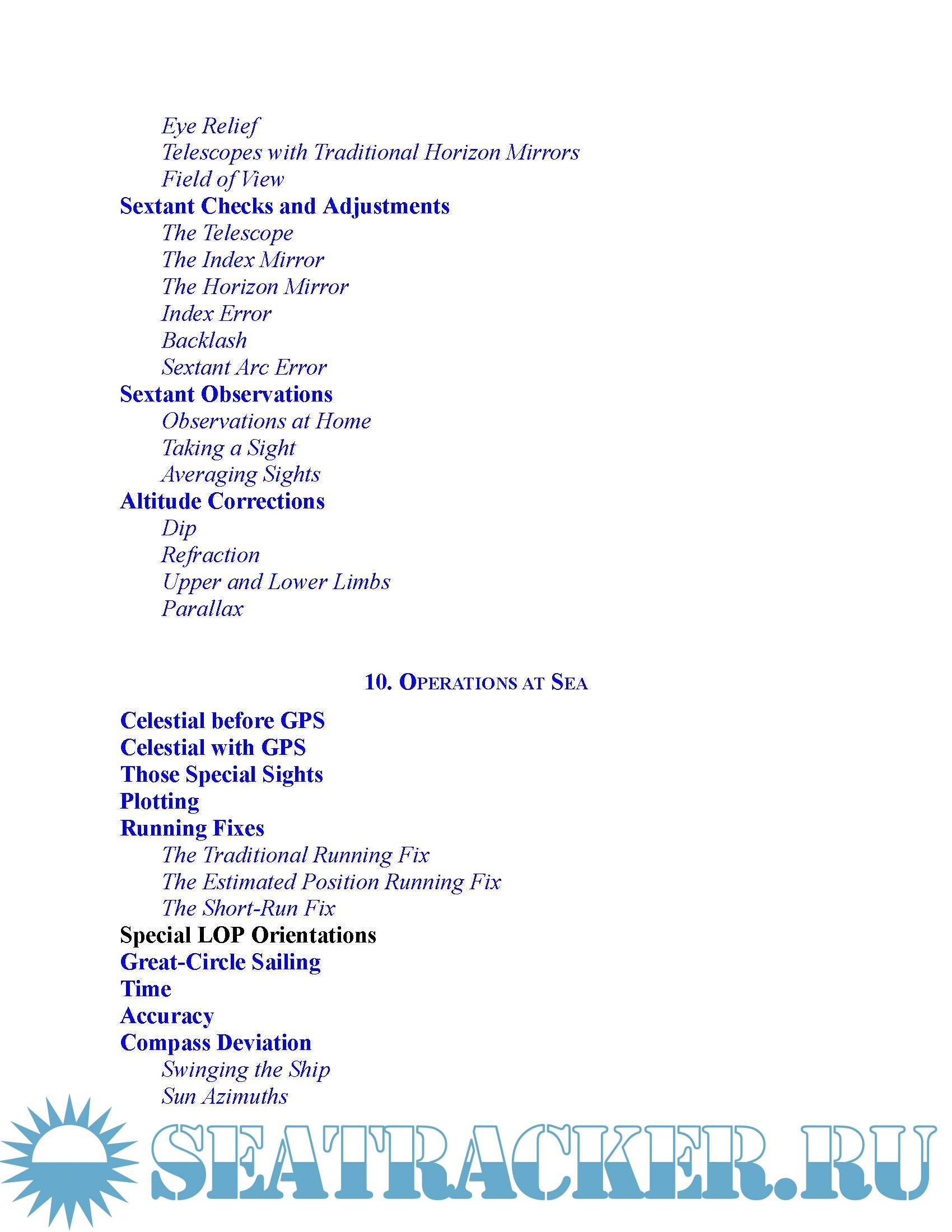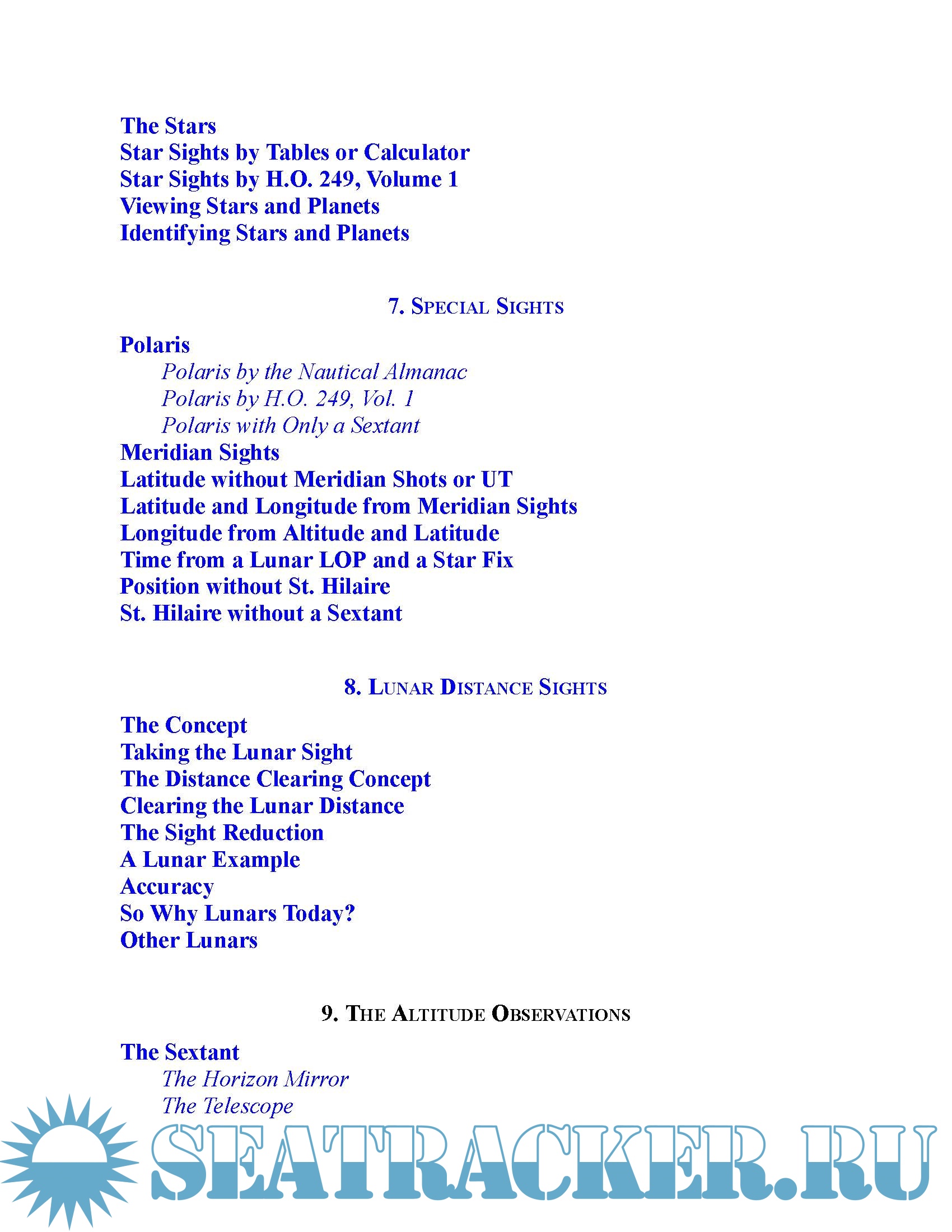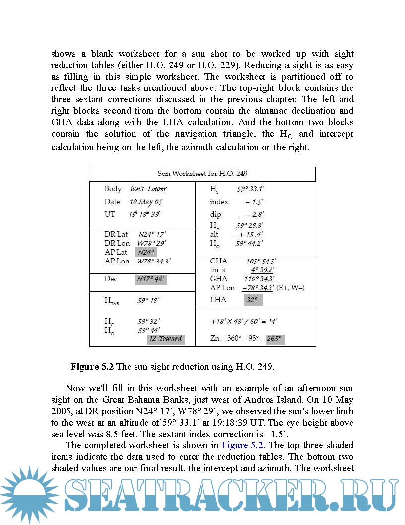 Covers all modern methods of celestial navigation including H.O. 229 and 249, direct calculations using calculators and 72 different exercises in five categories of interest.