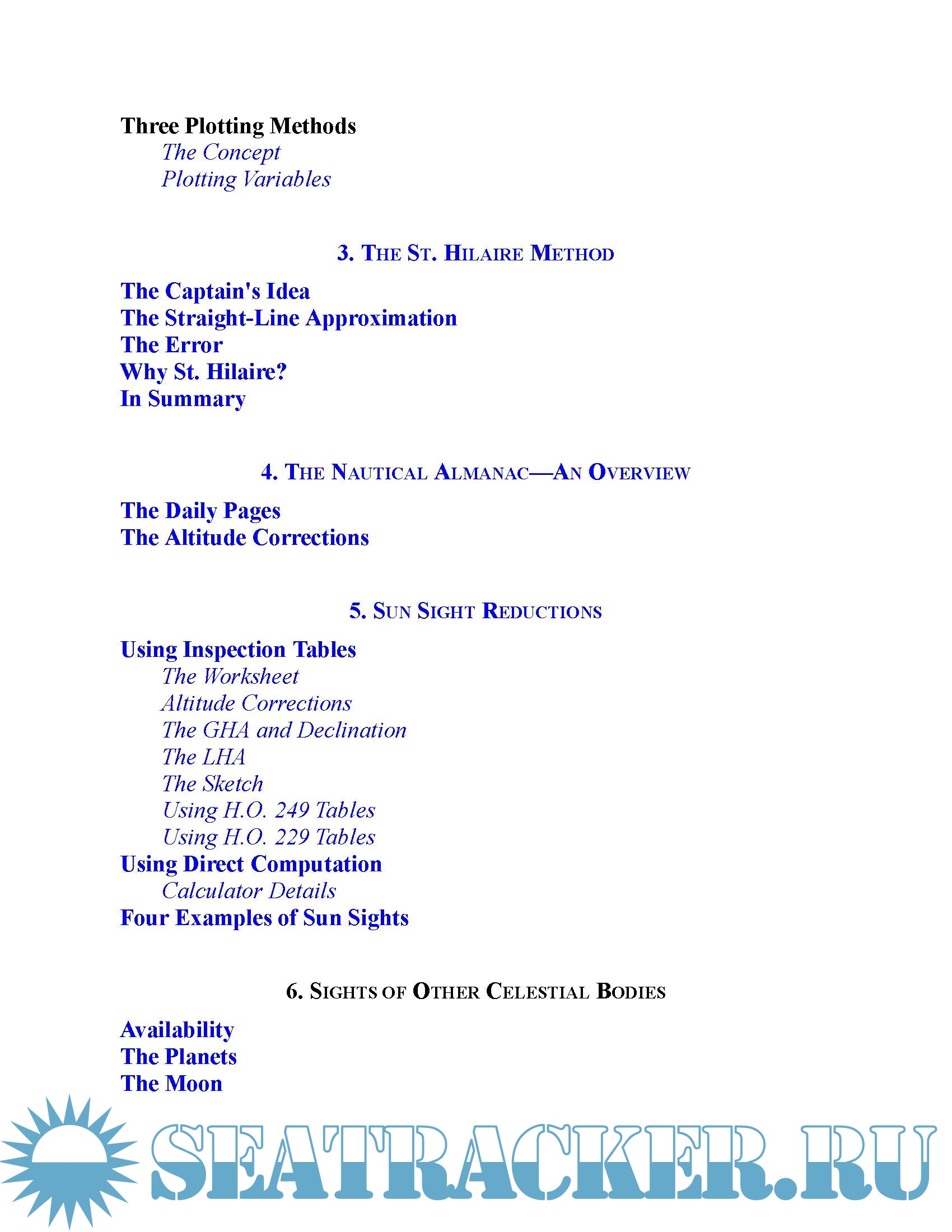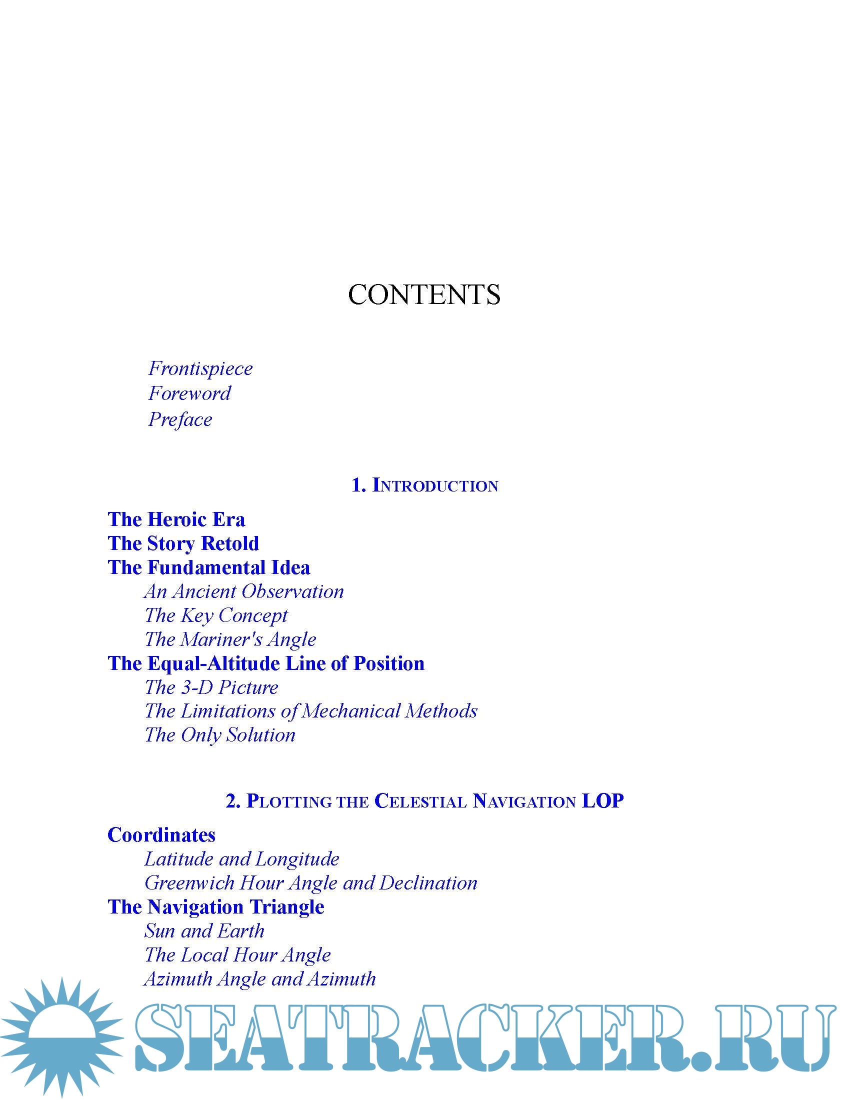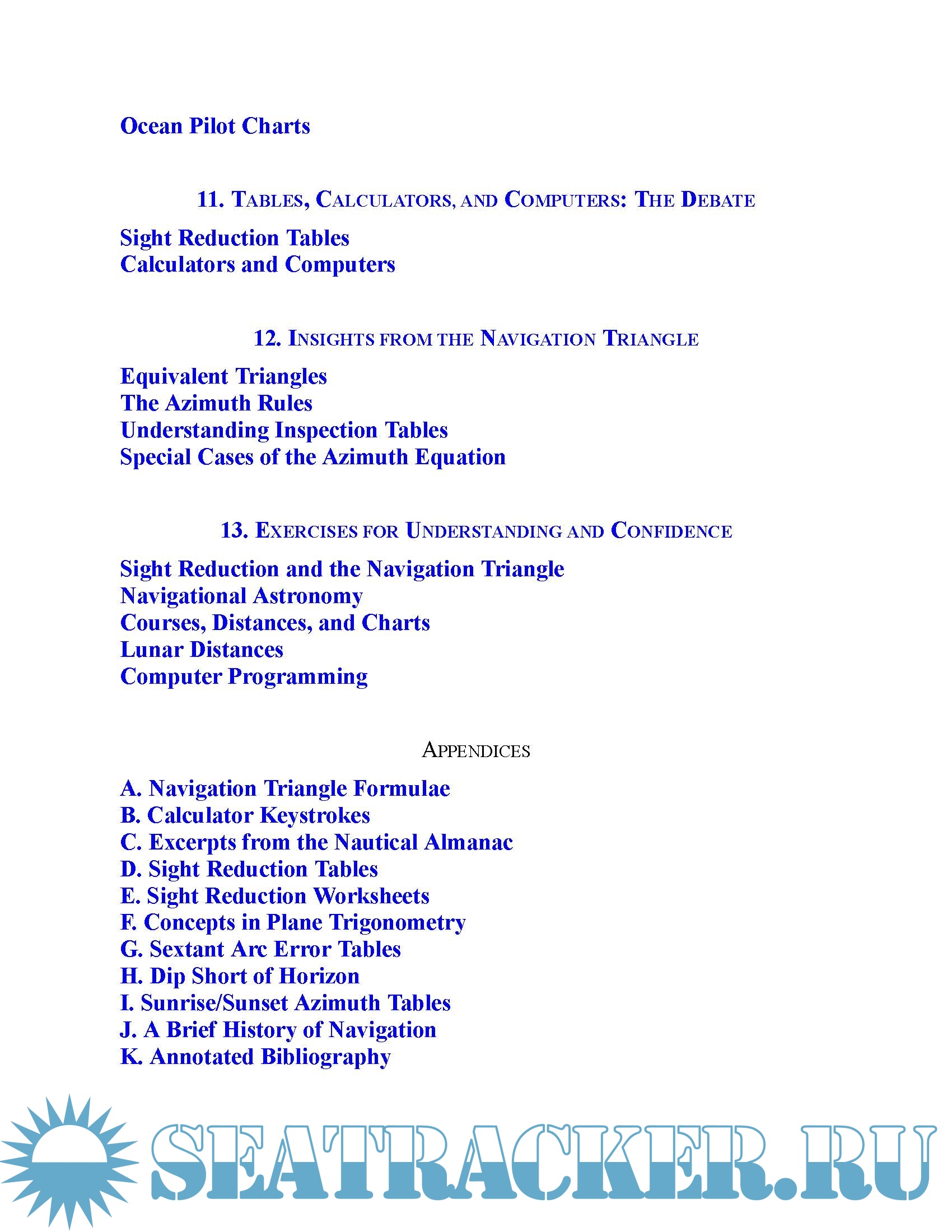 It’s tailored for navigation in the GPS age—a time of computers, calculators, and web resources. Although it covers all of the traditional methods of “working a sight,” the primary thrust is using the (under $10) scientific calculator. Using equations that you key into your calculator, this book guides you toward a better understanding of the concepts of celestial navigation.