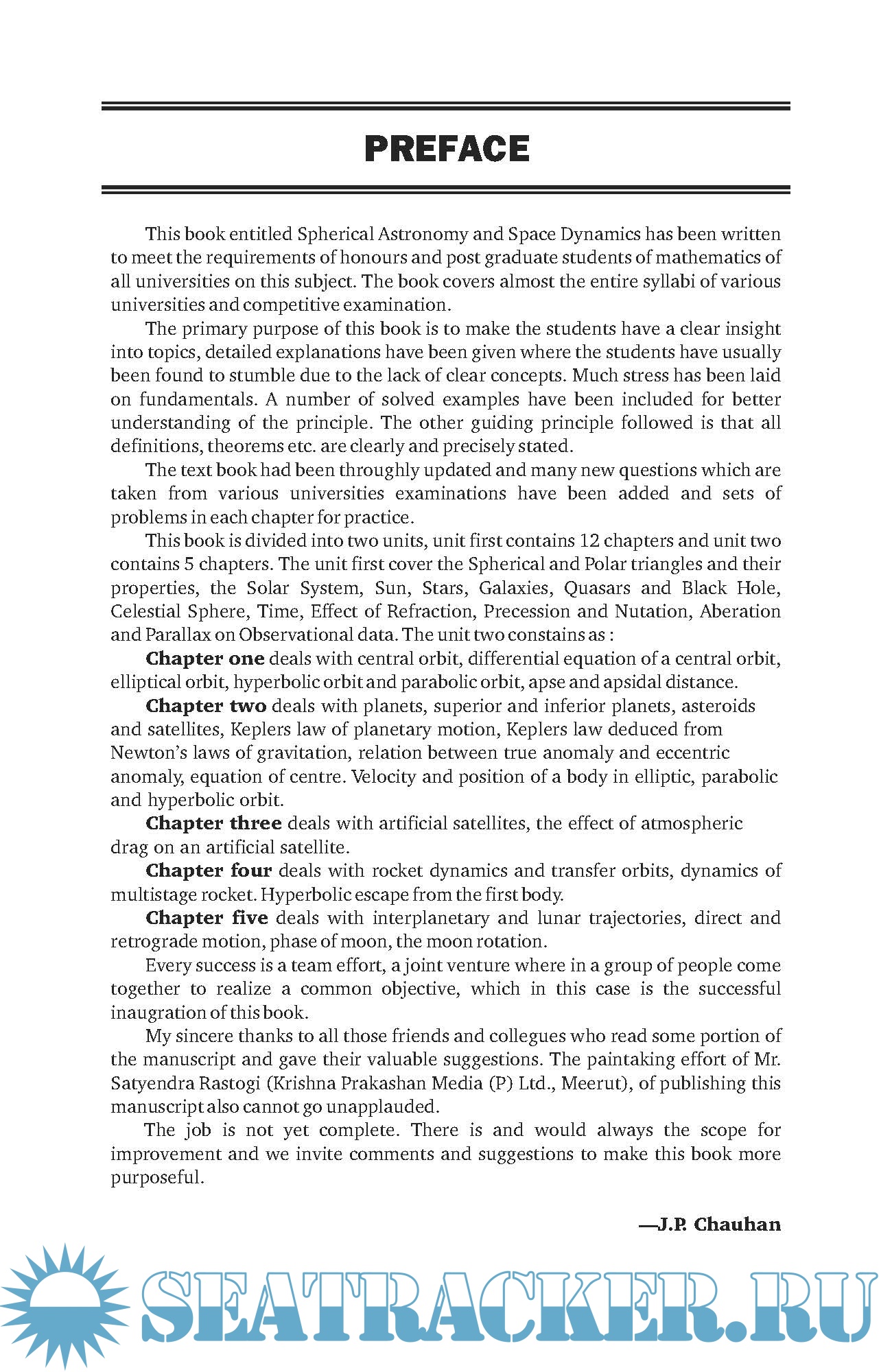 Year: 2020 Language: english Author: J.P. Chauhan Publisher: Krishna Prakashan Media Edition: 2nd Edition (July 12, 2020) ISBN: --- Format: PDF Quality: eBook Pages count: 462 Description: This book entitled Spherical Astronomy and Space Dynamics has been written to meet the requirements of honours and post graduate students of mathematics of all universities on this subject. The book covers almost the entire syllabi of various universities and competitive examination. The primary purpose of this book is to make the students have a clear insight into topics, detailed explanations have been given where the students have usually been found to stumble due to the lack of clear concepts. Much stress has been laid on fundamentals. A number of solved examples have been included for better understanding of the principle. The other guiding principle followed is that all definitions, theorems etc. are clearly and precisely stated.