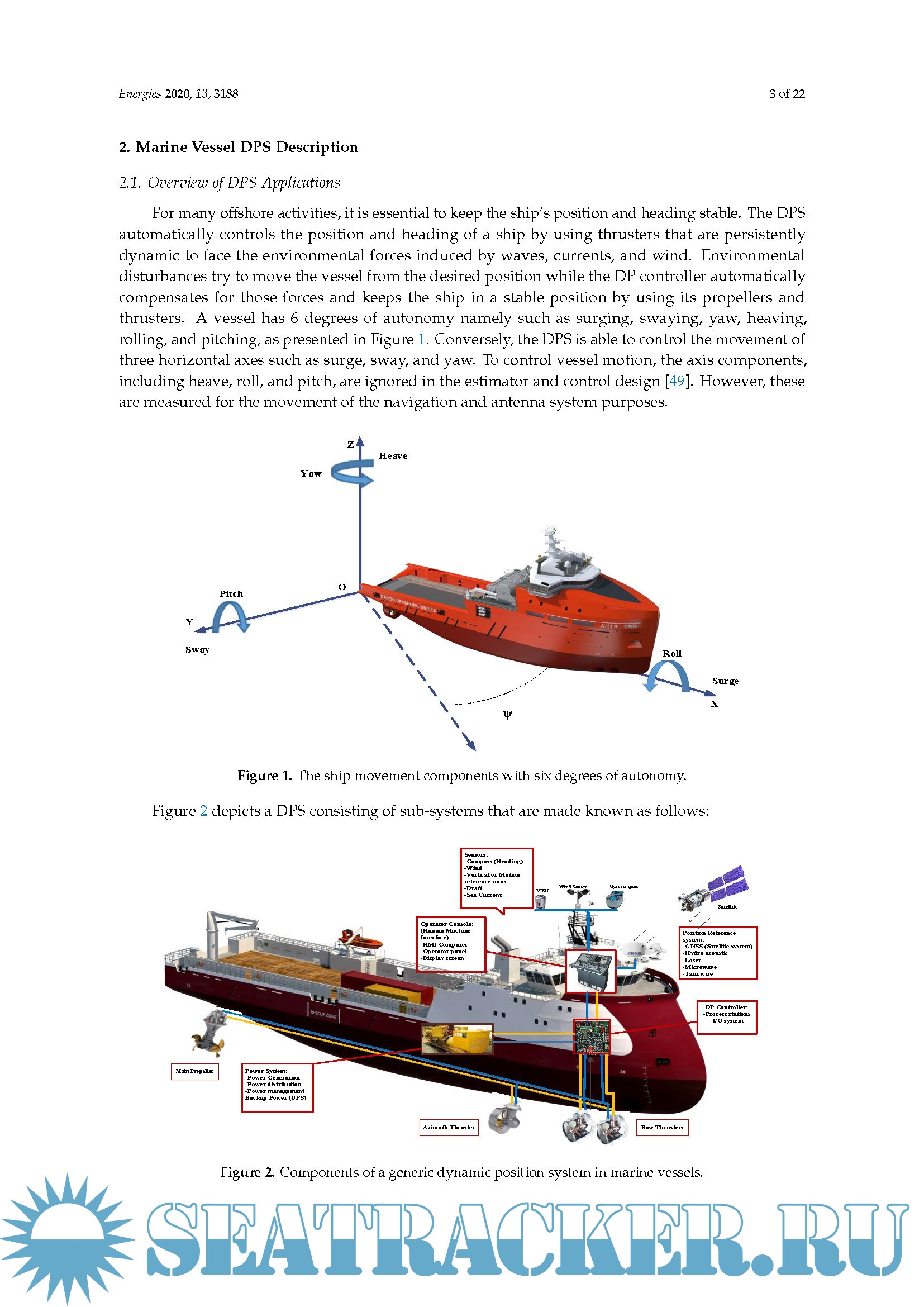 Year: 2020 Language: english Author: Mojtaba Mehrzadi and Others Genre: Research papers Edition: 19 June 2020 Format: PDF Quality: eBook Pages count: 22 Description: For many o shore activities, including o shore oil and gas exploration and o shore wind farm construction, it is essential to keep the position and heading of the vessel stable. The dynamic positioning system is a progressive technology, which is extensively used in shipping and other maritime structures. To maintain the vessels or platforms from displacement, its thrusters are used automatically to control and stabilize the position and heading of vessels in sea state disturbances. The theory of dynamic positioning has been studied and developed in terms of control techniques to achieve greater accuracy and reduce ship movement caused by environmental disturbance for more than 30 years. This paper reviews the control strategies and architecture of the DPS in marine vessels. In addition, it suggests possible control principles and makes a comparison between the advantages and disadvantages of existing literature. Some details for future research on DP control challenges are discussed in this paper. :