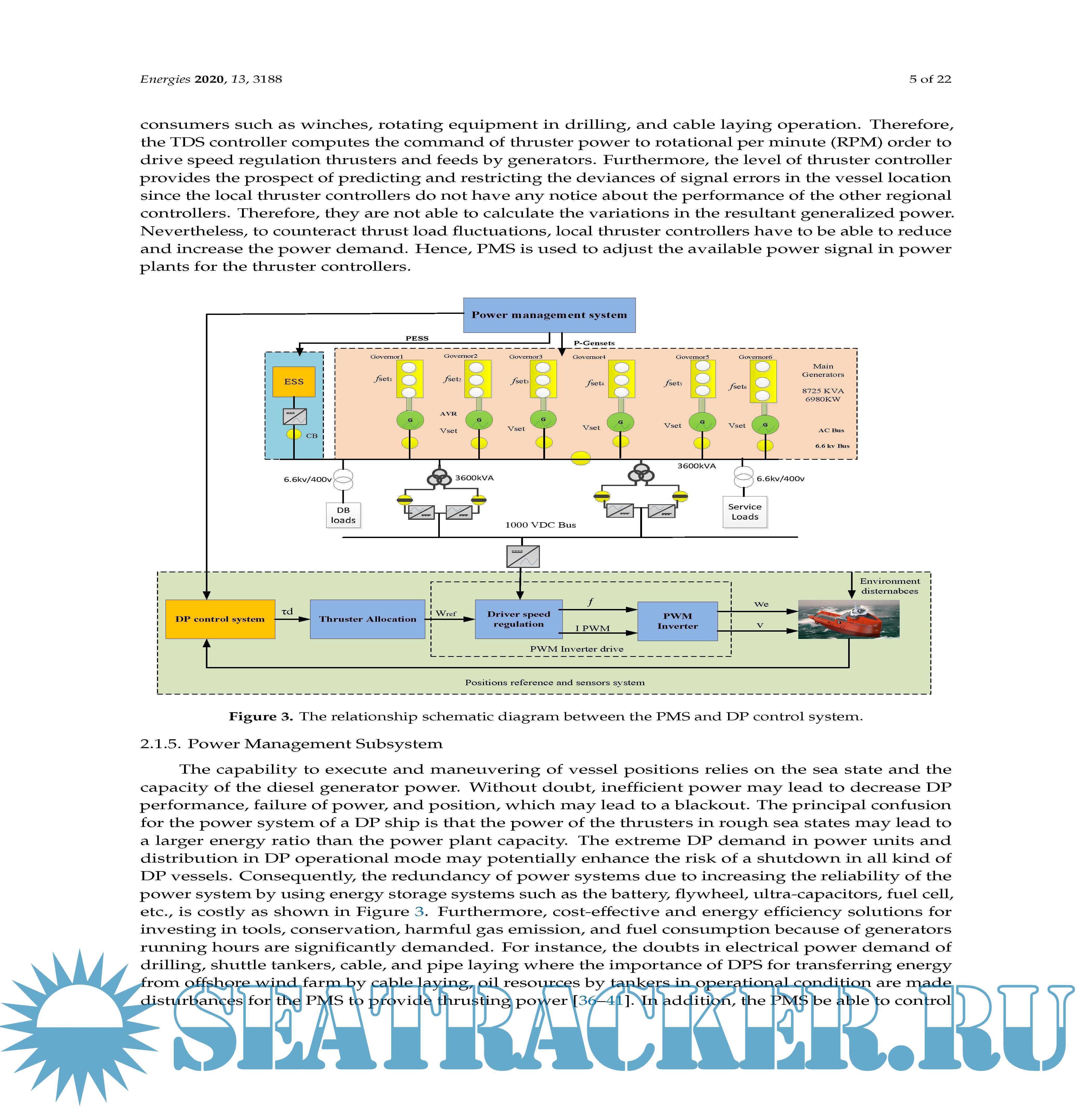 This paper reviews the control strategies and architecture of the DPS in marine vessels.