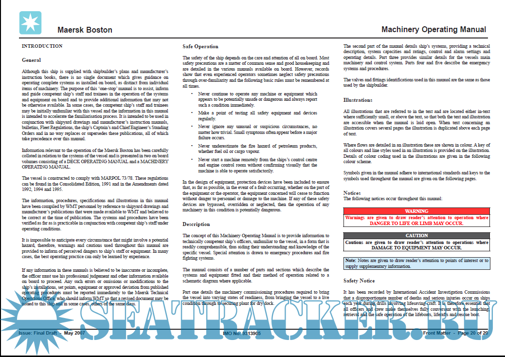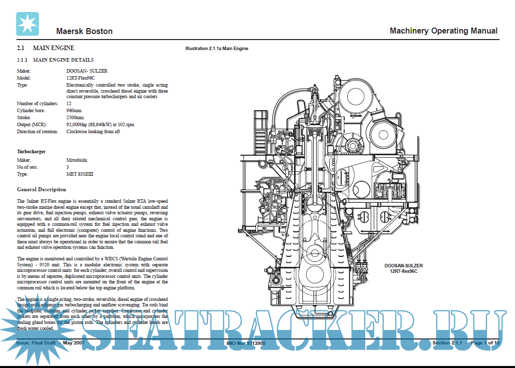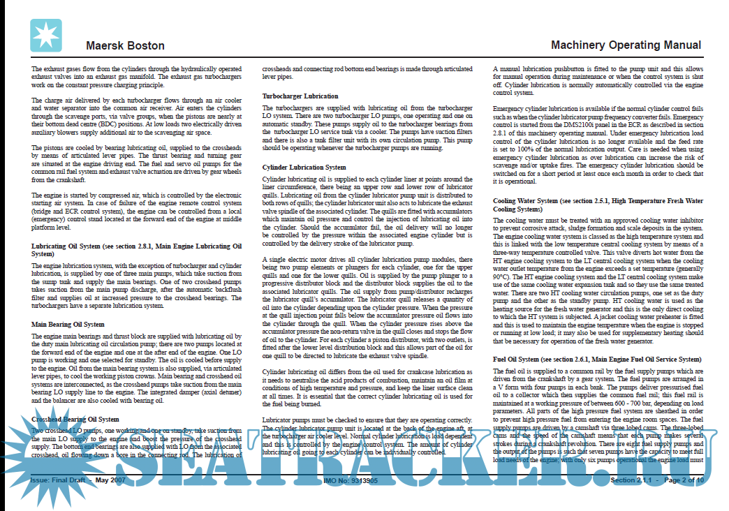 Container ship Maersk Boston - IMO 9313905 - Machinery Operating Manual-2006