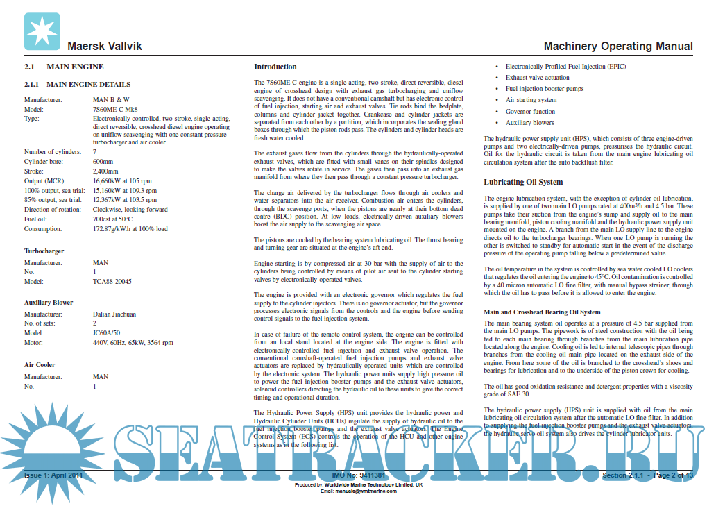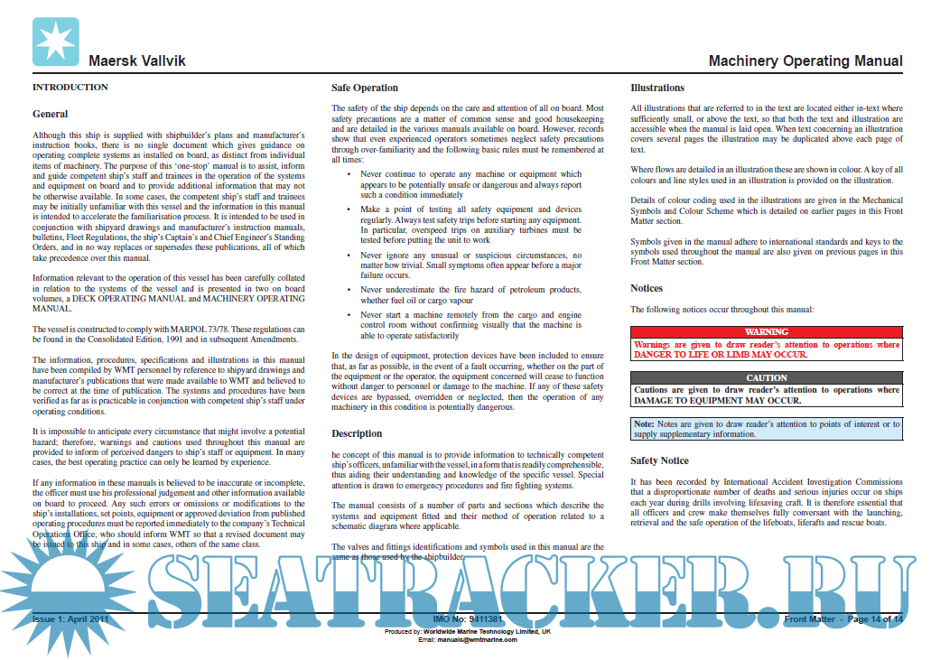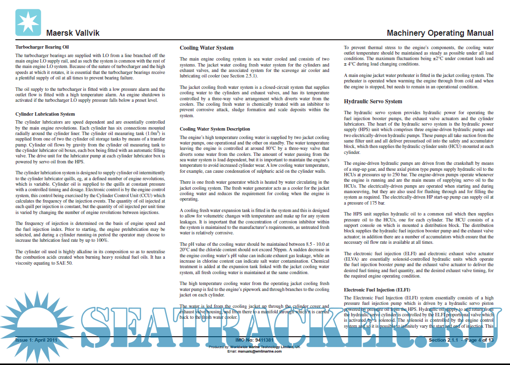 Container MV Maersk Vallvik – IMO 9411381 –Machinery Operating Manual