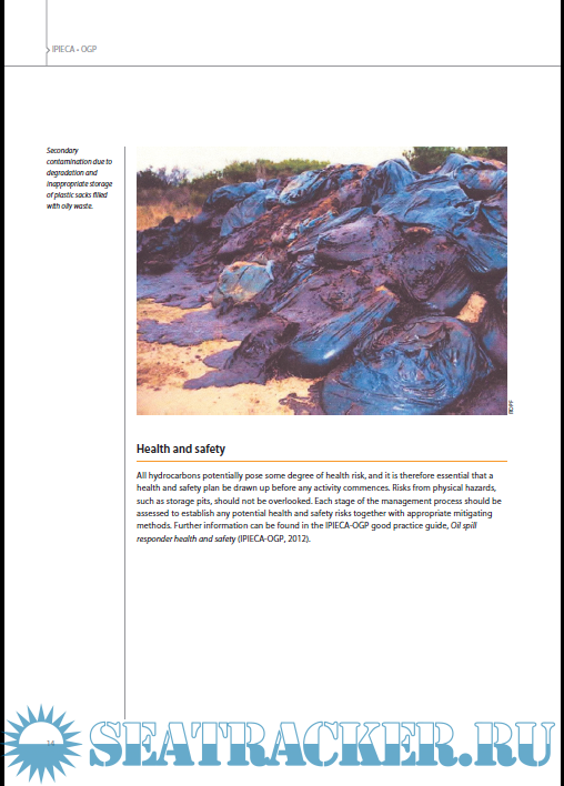 Year: 2014 Language: english Author: IPIECA - IOGP Genre: Guide Format: PDF Quality: eBook Pages count: 52 Description: The response to an oil spill often results in the rapid generation and accumulation of large quantities of oily waste. Emulsified oil, oiled sand, gravel and entrained debris can increase the volume of waste to many times the volume of oil originally spilt