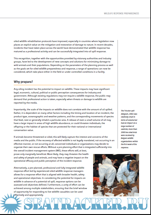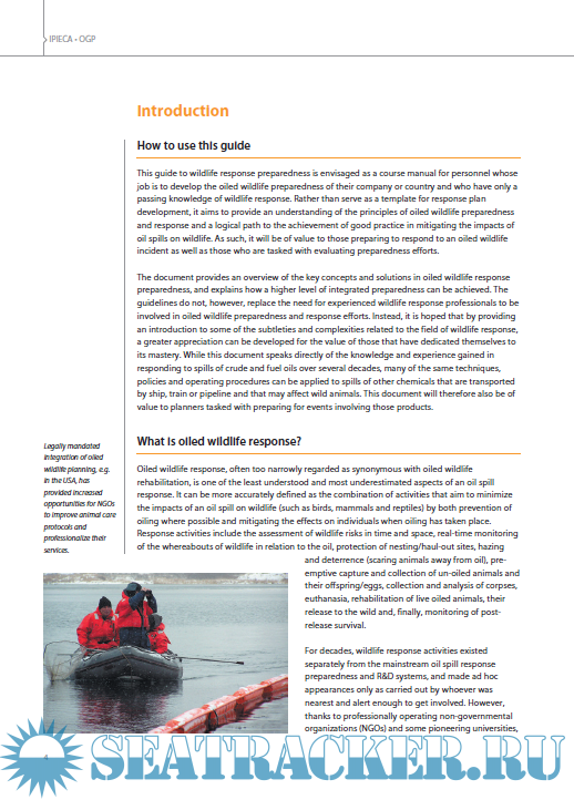 Year: 2014 Language: english Author: IPIECA - IOGP Genre: Guide Format: PDF Quality: eBook Pages count: 64 Description: This guide to wildlife response preparedness is envisaged as a course manual for personnel whose job is to develop the oiled wildlife preparedness of their company or country and who have only a passing knowledge of wildlife response.